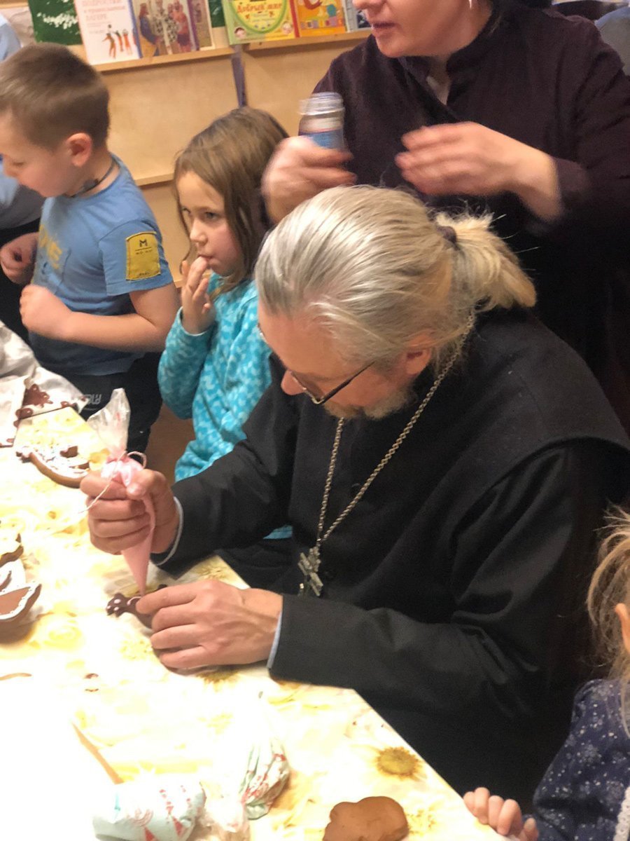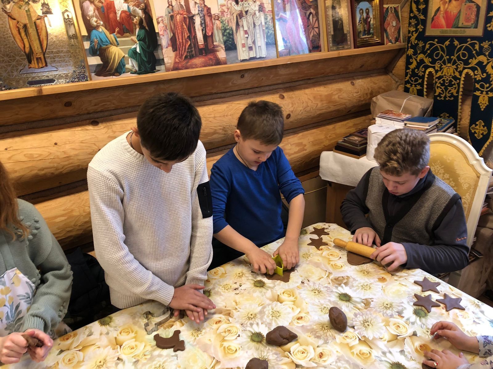 19 декабря на приходе Иверской иконы Божией Матери пос. Птицефабрика Мытищинского городского округа по окончании Божественной литургии состоялся мастер-класс по выпеканию рождественских пряников – козуль. Козули – плоские украшенные пряники – являлись лакомством поморов (жителей Архангельской губернии) которые пекли их только на Рождество. Традицию изготовления козуль переняли жители Урала. Готовыми фигурками украшали рождественские елки. Участники мастер-класса освоили основы формовки и выпекания козуль, а также украсили их с помощью цветной глазури и различных съедобных украшений.
