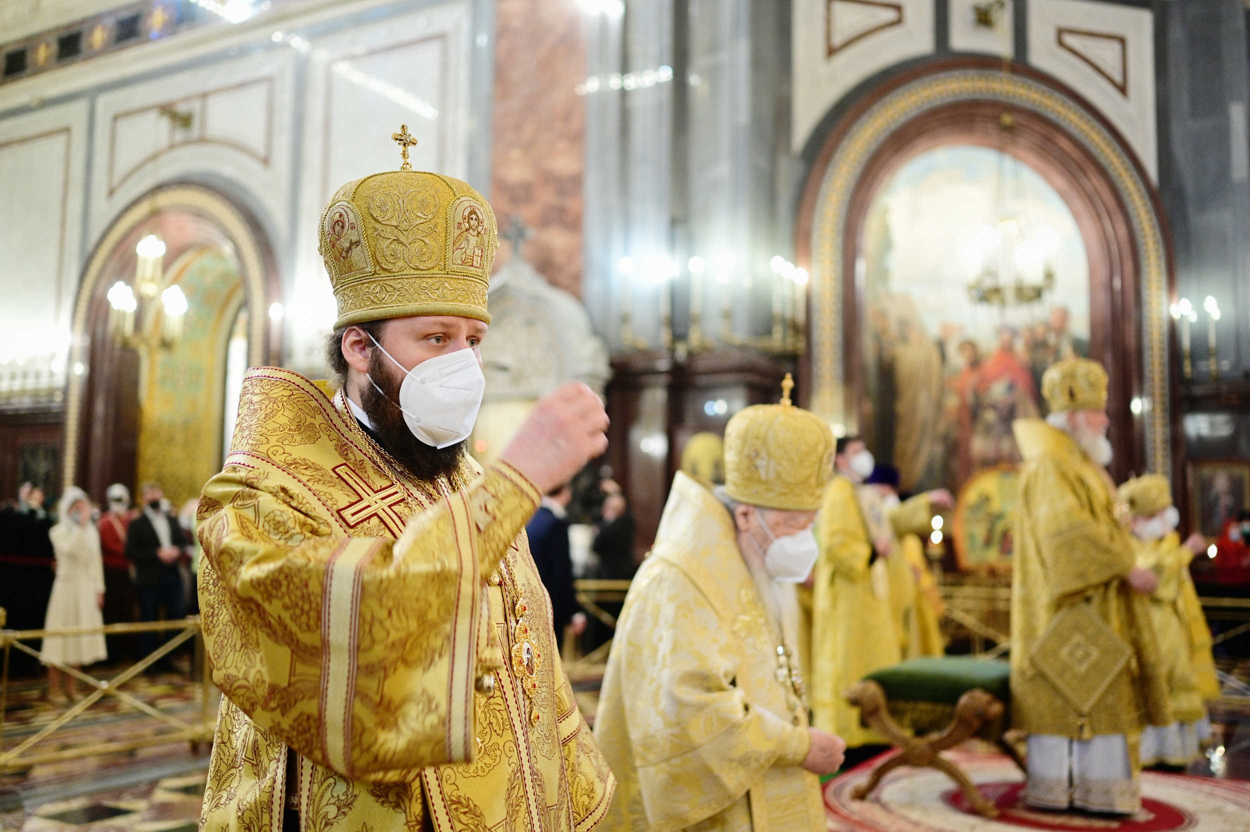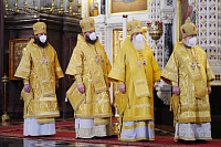 На сугубой ектении были вознесены молитвенные прошения о избавлении от распространения коронавирусной инфекции.