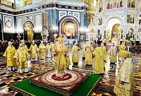 Богослужебные песнопения исполнил Патриарший хор Храма Христа Спасителя (регент — И.Б. Толкачев).