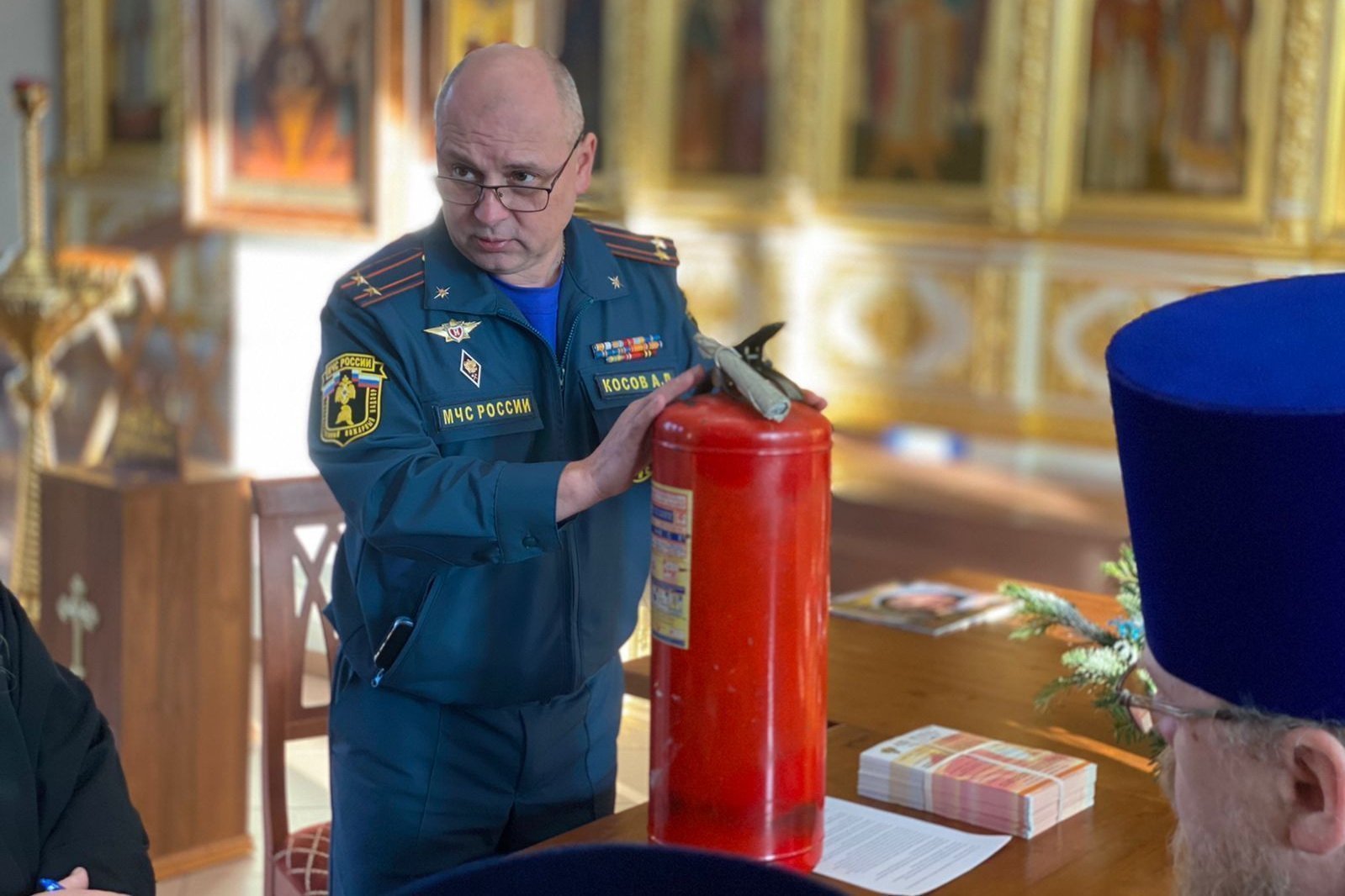 На совещании присутствовал заместитель начальника отдела надзорной деятельности и профилактической работы по Павловскому Посаду и Электрогорску Главного управления МЧС России подполковник А.Л. Косов, который напомнил духовенству о правилах пожарной безопасности в храмах и на их территории.