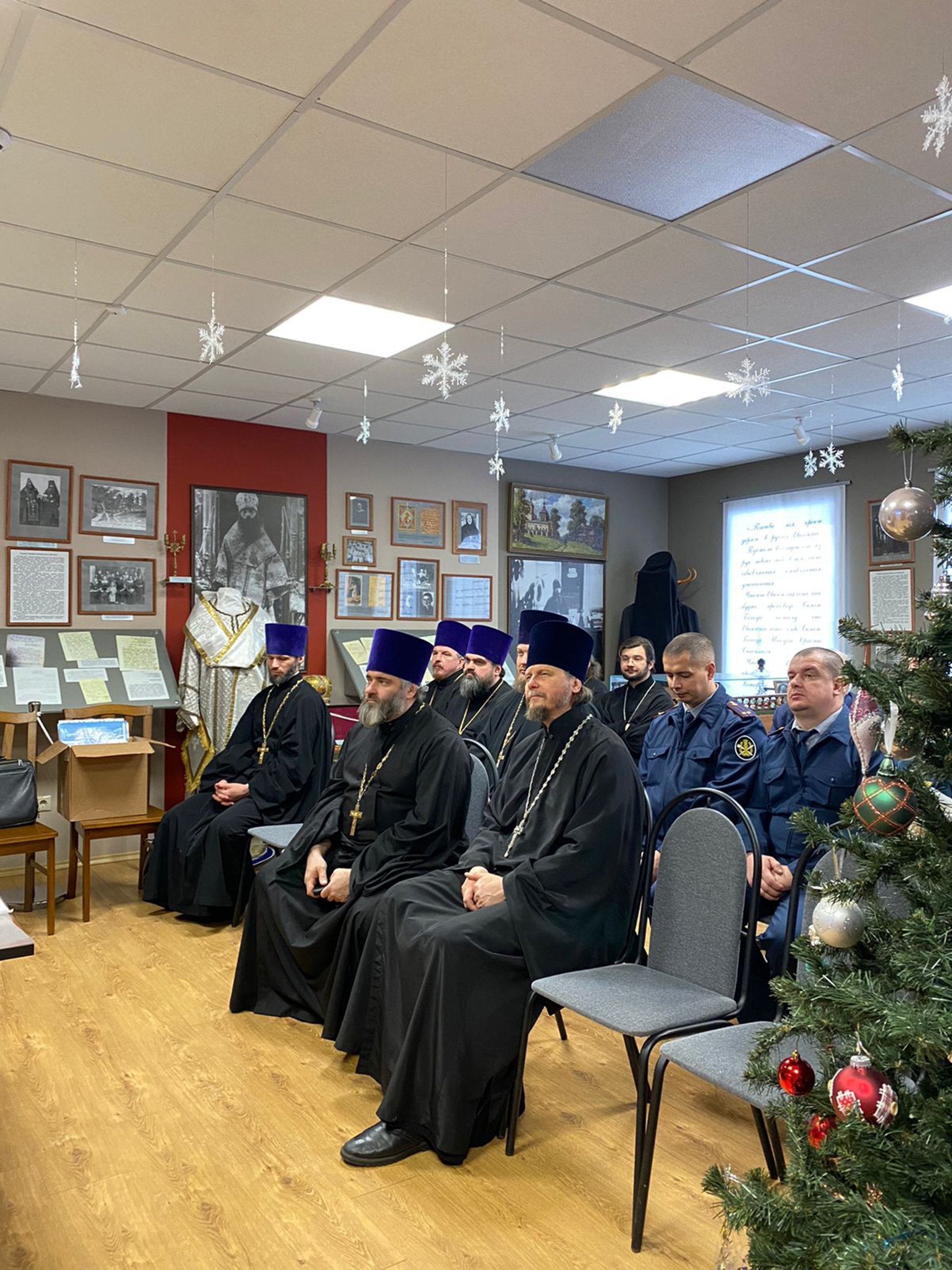 Мероприятие началось с молебна в музее священномученика Серафима Звездинского, епископа Дмитровского, в келии священномученика и святителя Дмитровской земли. Богослужение возглавил благочинный Дмитровского церковного округа протоиерей Афанасий Чорногуз, которому сослужили благочинный Рогачевского церковного округа священник Сергий Сафронов, благочинный Яхромского церковного округа священник Сергий Бернацкий, а также духовенство Дмитровского городского округа, задействованного в духовном окормлении силовых подразделений.