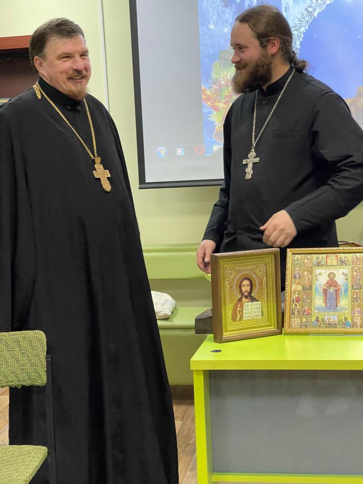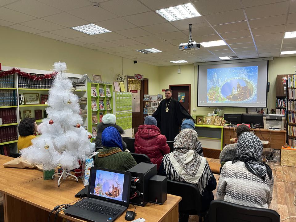 29 декабря в Подосинковской библиотеке состоялась встреча, посвященная приближающемуся празднику Рождества Христова. Настоятель Свято-Духовского храма деревни Дубровки протоиерей Димитрий Колупаев рассказал о главном зимнем празднике, ответил на вопросы слушателей. Затем настоятель Покровского храма села Орудьево священник Дионисий Лысиков исполнил несколько песен на гитаре и гуслях. Также отец Дионисий показал мастер-класс игры на гуслях для детей.