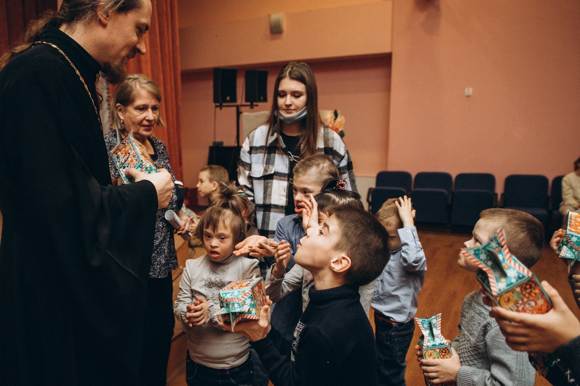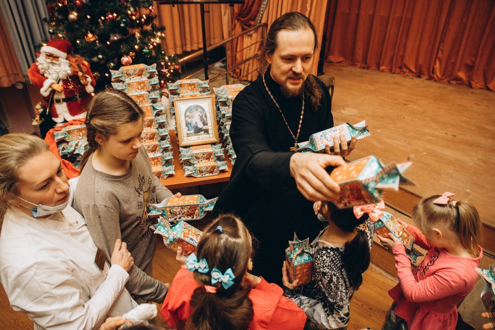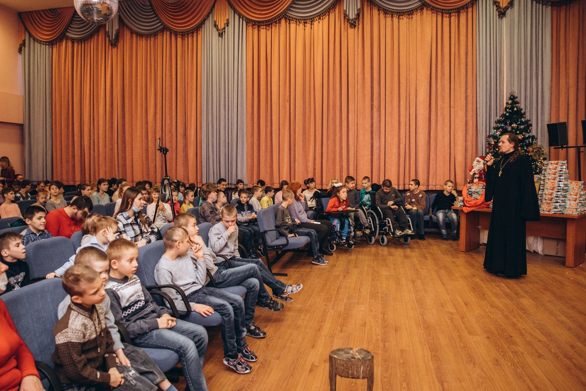 В начале торжества иерей Иоанн обратился с приветственным словом ко всем собравшимся ребятам, поздравив их с Рождеством Христовым. Перед воспитанниками интерната выступил Дом сказки «Лукоморье» со спектаклем, по ходу которого дети не только слушали и смотрели выступление артистов, но и сами смогли принять в нем участие. По окончании выступления иерей Иоанн вручил каждому из детей по сладкому подарку, навестив и тех ребят, кто по состоянию здоровья не мог участвовать в празднике. Закончился вечер праздничным фейерверком, который возможно было увидеть не только с территории интерната, но и из окон комнат, чтобы подарить радость праздника тем детям, которые не имеют возможность выйти на улицу.