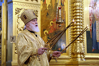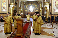 По окончании Литургии перед иконой святителя Василия Великого было совершено славление, после чего Владыка обратился к молящимся с архипастырским словом.