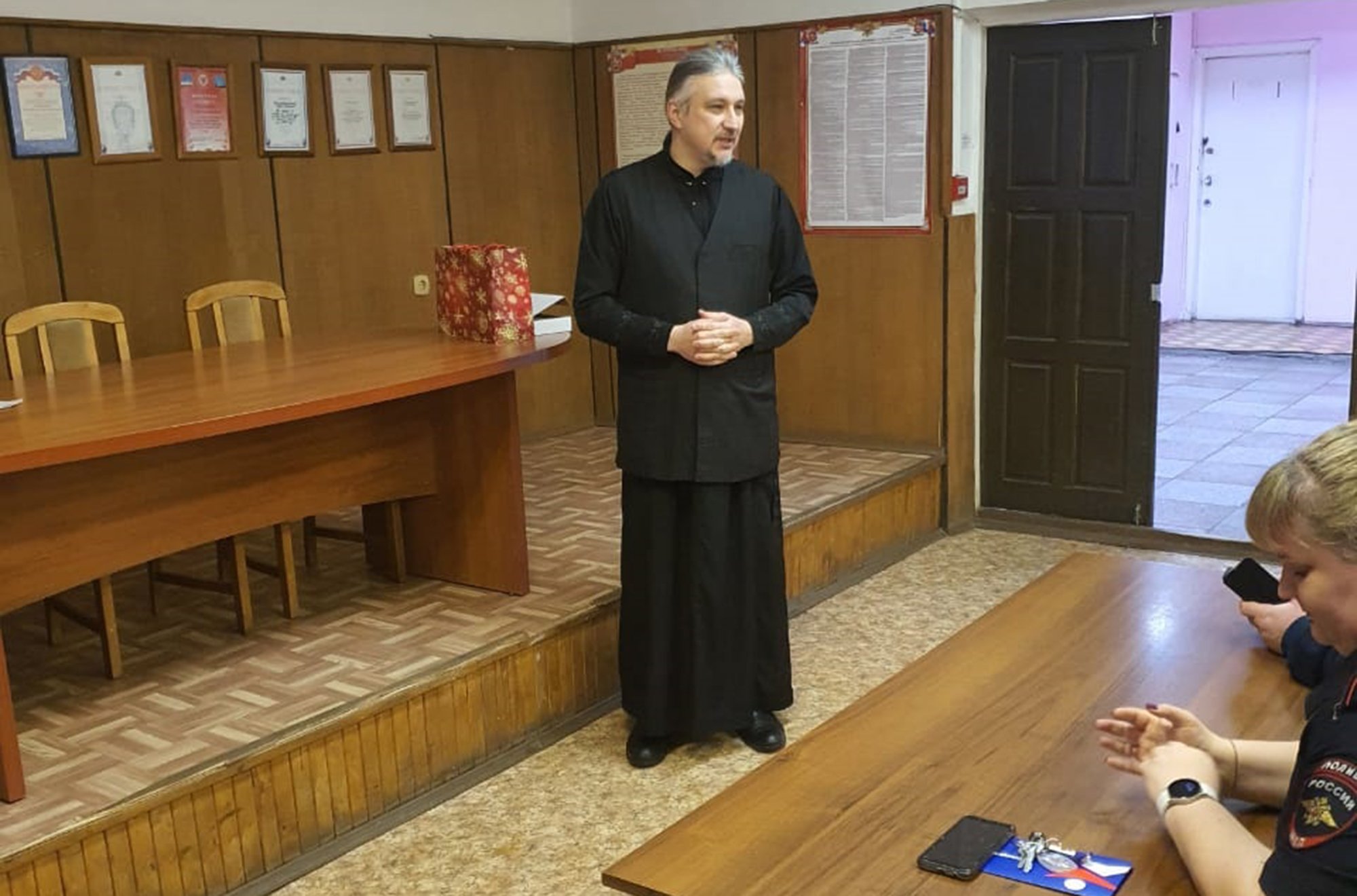 Накануне праздника в актовом зале отдела МВД г. Красноармейск состоялась встреча настоятеля храма свт. Николая Чудотворца с. Царёво священника Сергия Львова с сотрудниками полиции. С личным составом отдела была проведена беседа, посвященная празднику Крещения Господня, а так же были намечены планы совместных мероприятий на 1-е полугодие 2022г.