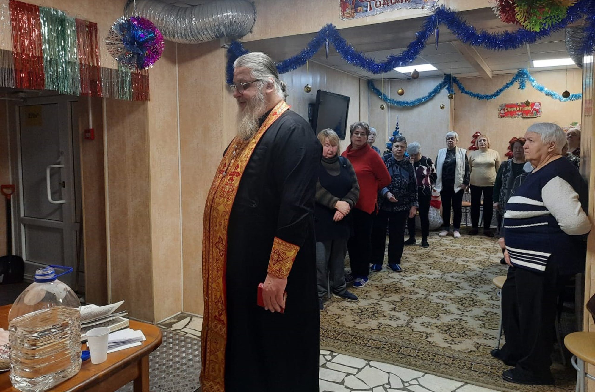 20 января состоялась встреча настоятеля Космо-Дамианского храма г.Королёва протоиерея Виктора Нестерова с персоналом и пациентами Королёвского Дома Ветерана "Забота". Был отслужен молебен о здравии. Затем батюшка освятил временное помещение Дома Ветеранов, т.к. в настоящее время основное здание Дома Ветеранов с домовым храмом святителя Николая находится в процессе реконструкции. Батюшка поздравил всех с праздником Богоявления, пациентам и сотрудникам Дома Ветеранов были вручены подарки.
