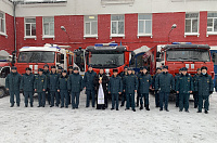 Также 18 января настоятель Сергиевского храма г. Королёва священник Алексий Шумейко совершил Великое освящение воды в пожарной части СПЧ-20, окропил святой водой пожарную технику и поздравил весь пожарный расчет с праздником. От храма пожарной части была подарена икона святителя Николая чудотворца.