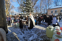 18 января в часовне прп. Серафима Саровского при филиале госпиталя им. Мандыка в микрорайоне Первомайский г. Королева настоятель Космо-Дамианского храма протоиерей Виктор Нестеров совершил чин Великого освящение воды. Батюшка поздравил всех с праздником Богоявления и Крещения Господня, пожелал всем здоровья, помощи Божией, а пациентам скорейшего выздоровления. После этого о. Виктор прошёл по отделениям госпиталя, окропил всё крещенские водой.