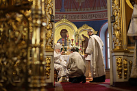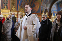 За Богослужением была совершена диаконская хиротония клирика Богоявленского собора чтеца Николая Герасимова.