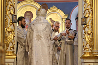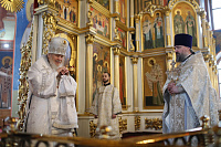 По окончании Литургии протоиерей Марк Ермолаев поблагодарил Владыку за совершённое богослужение, за внимание к приходу и укрепление клира собора новопоставленным диаконом.