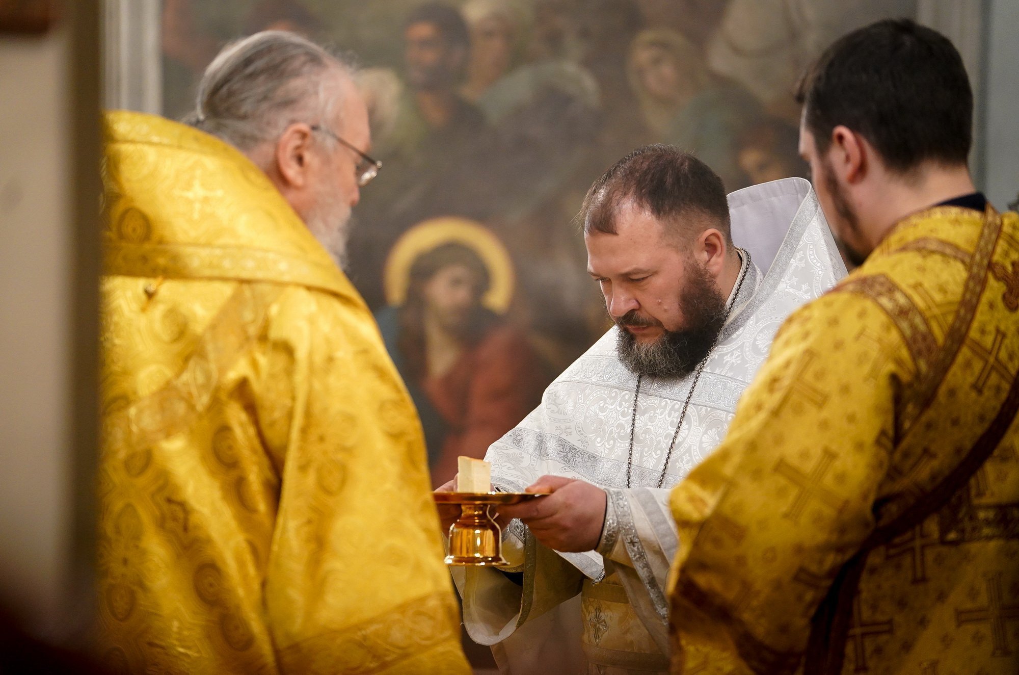 За богослужением клирик храма диакон Сергий Головенко был рукоположен во пресвитера. По благословению правящего архиерея отец Сергий продолжит служение на приходе Николо-Архангельского храма, к которому был приписан с первого дня своего священнослужения в 2010 году.