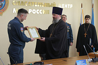 Протоиерей Марк Ермолаев передал ряду сотрудников благодарственные грамоты епископа Балашихинского и Орехово-Зуевского Николая в связи с 85-летием Центра и во внимание к трудам по развитию взаимодействия с Русской Православной Церковью.