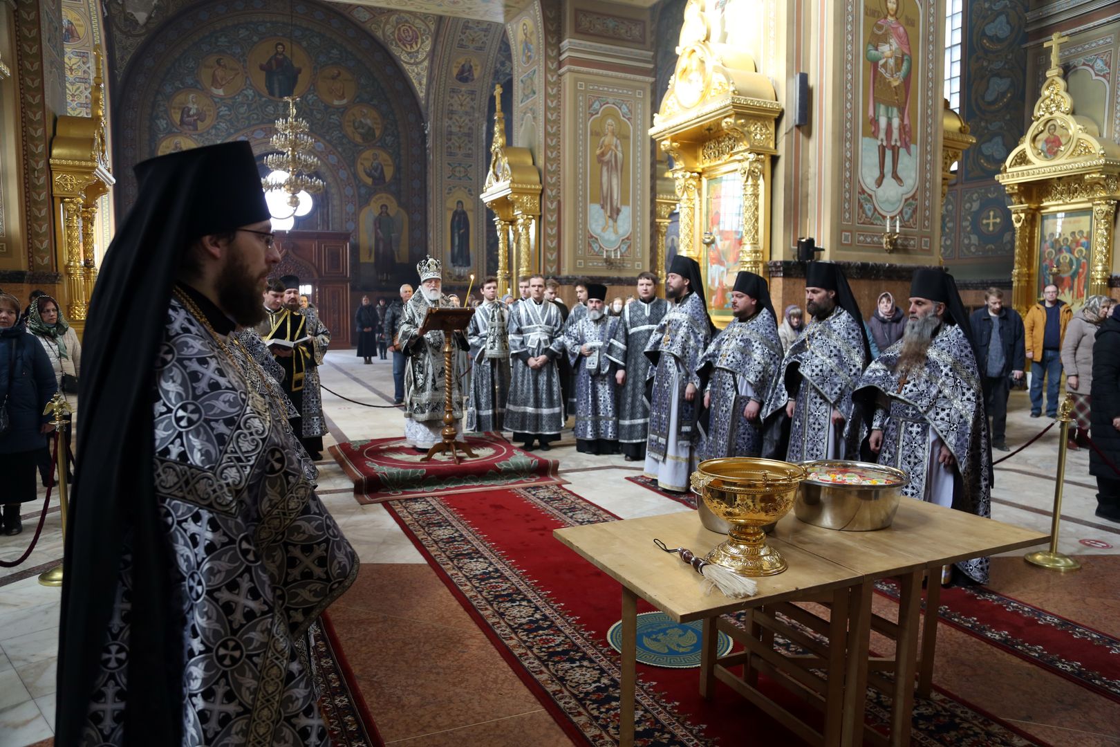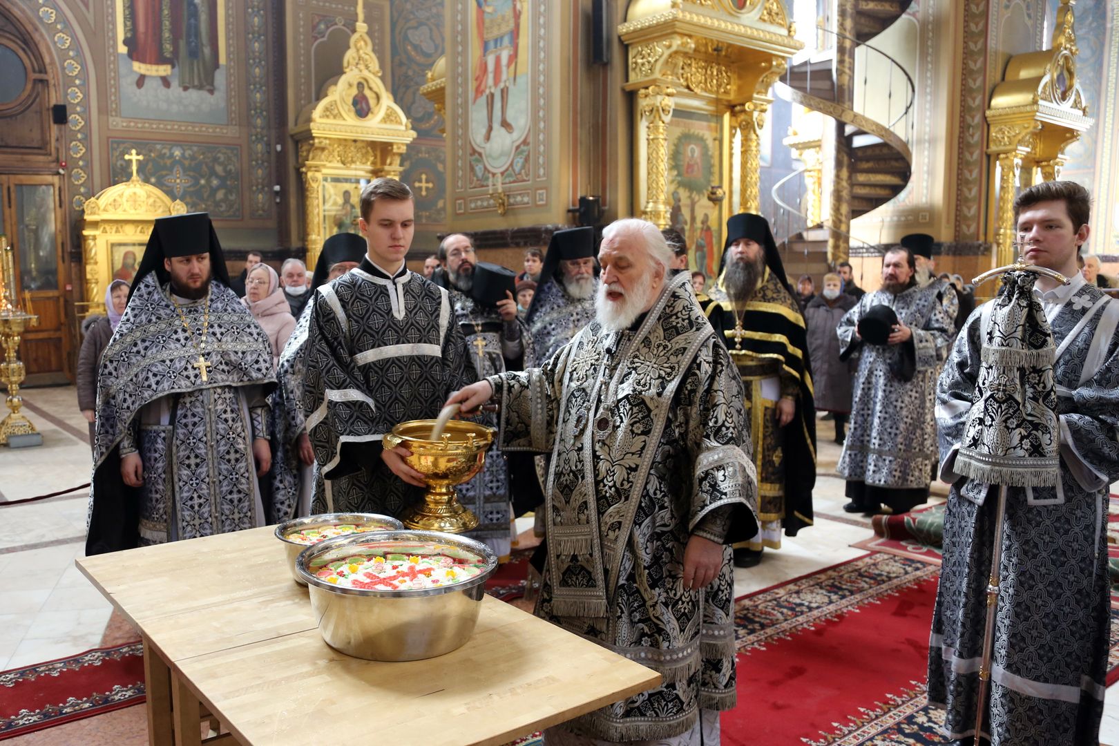 По заамвонной молитве митрополит Павел возглавил молебный канон великомученику Феодору Тирону и благословил коливо.