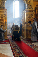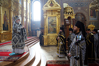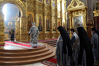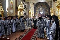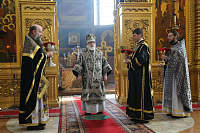 Его Высокопреосвященству сослужили: наместник иеромонах Кирилл (Зинковский) и клирики обители.