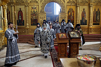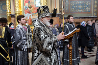11 марта, в пятницу первой седмицы Великого поста, митрополит Крутицкий и Коломенский Павел молился за уставным богослужением, а затем совершил Литургию Преждеосвященных Даров в Спасо-Преображенском соборе Николо-Угрешского ставропигиального мужского монастыря.