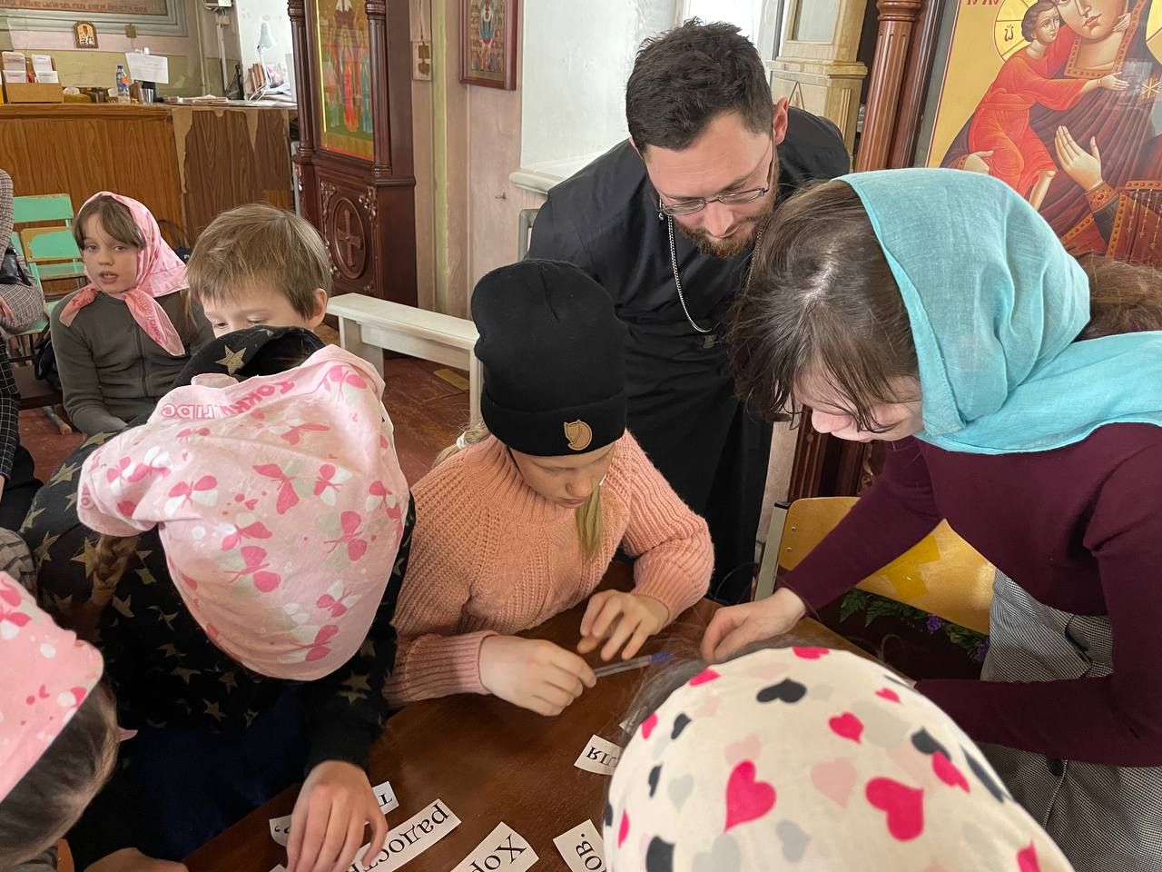 27 марта в селе Саввино прошло мероприятие, посвящённое Дню православной книги. Иерей Александр Леонтьев рассказал ребятам об истории этого праздника, показал старинные книги. Так же дети смогли при помощи священника почитать на церковнославянском языке и самостоятельно нарисовать заглавные буквы.
