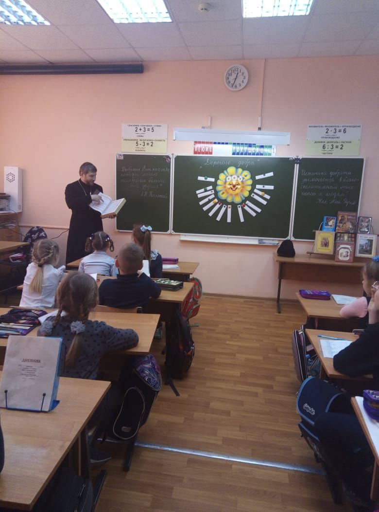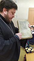 10 марта в Гимназии №10 г.о. Егорьевск ко дню Православной Книги, иерей Сергий Ершов провёл урок в начальных классах «Дорогу Добра», рассказал детям о Святом Евангелии и побеседовал с ними о добродетелях.