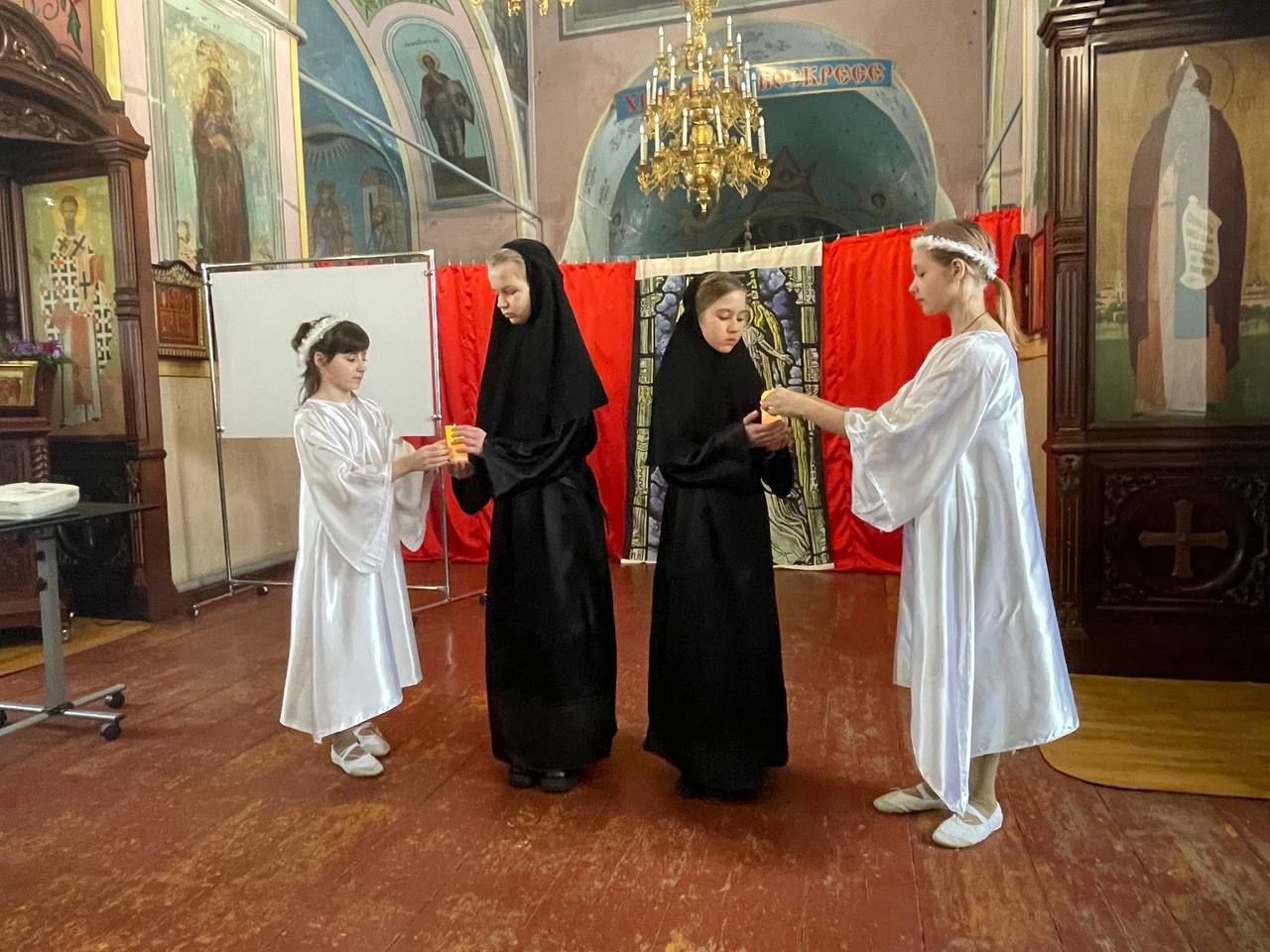 В первой части праздника учащиеся воскресной школы и молодёжного клуба Знаменского храма показали постановку о новомучениках, служивших в 1929-1931 гг. в нашем храме. В перерыве для ребят и взрослых было организовано чаепитие. А после перерыва для ребят состоялся квест по истории книжного дела, библейской истории и знанию богослужебных книг.