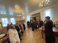 26 марта на приходе Никольского храма в Большом Гридино в рамках празднования дня православной книги прошла встреча настоятеля иерея Димитрия Токманя с прихожанами. В ходе беседы отец Димитрий рассказал о книгах используемых при богослужении и ответил на вопросы присутствующих.
