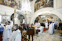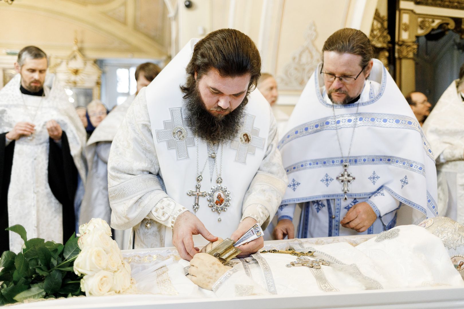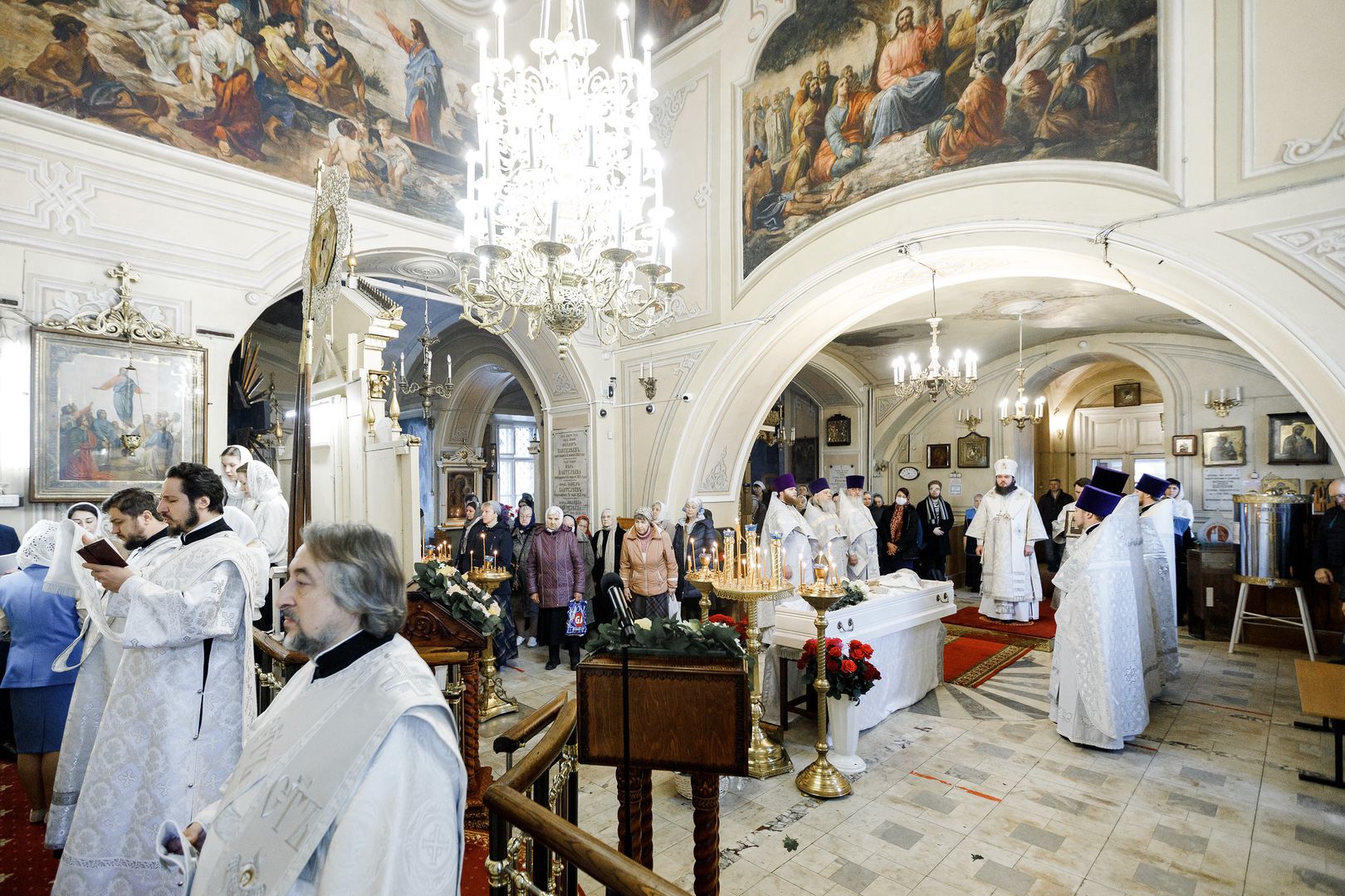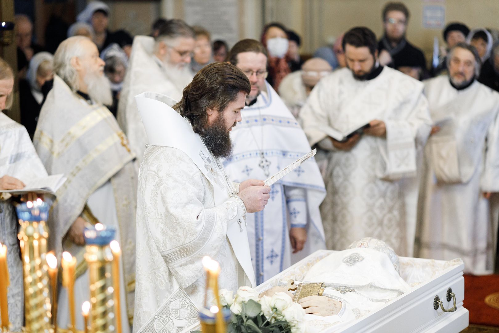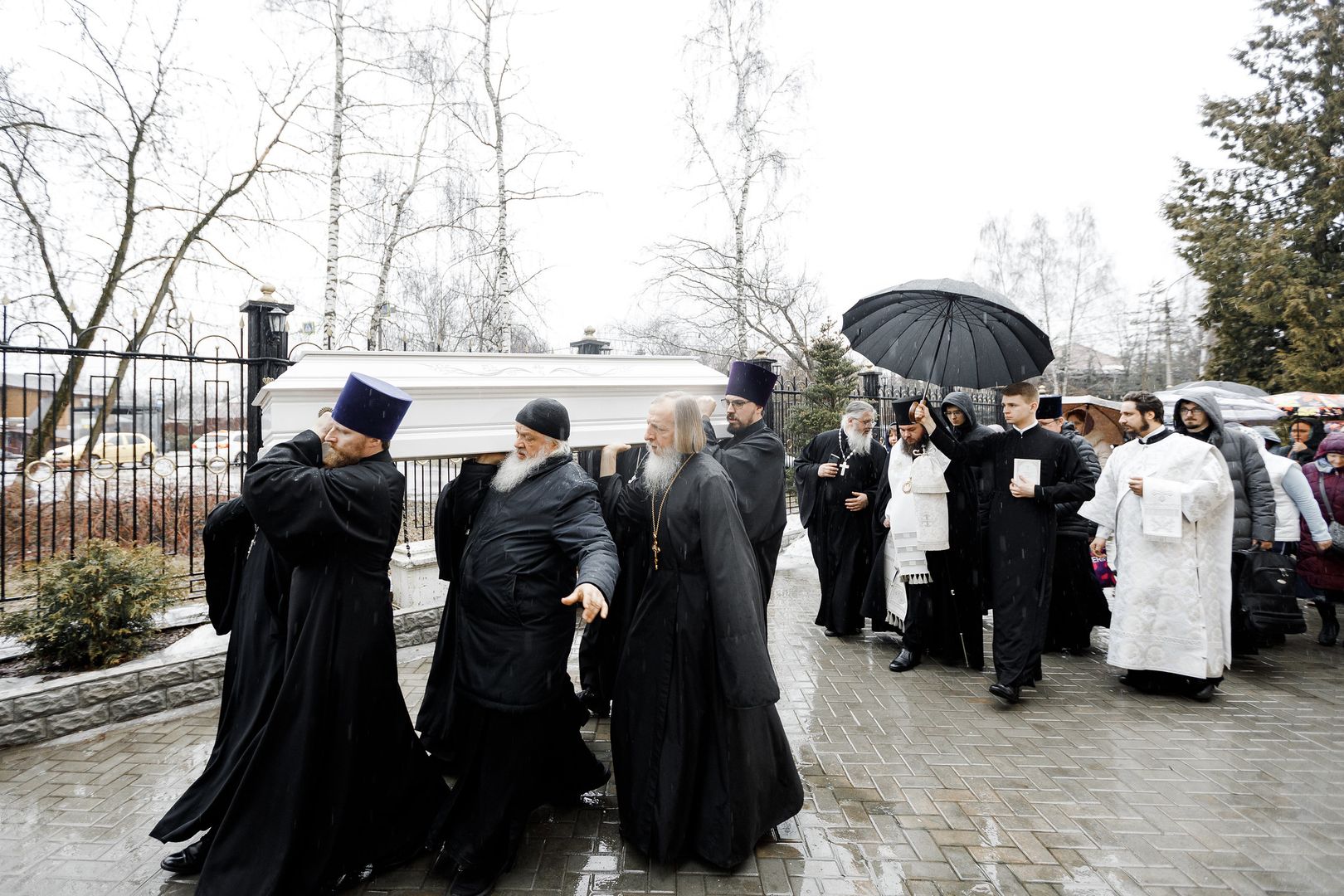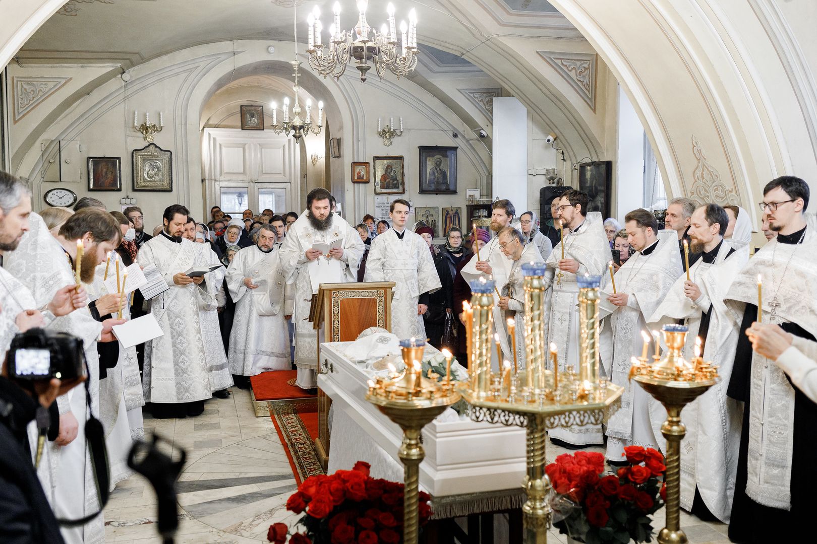 Божественную литургию и чин отпевания возглавил епископ Сергиево-Посадский и Дмитровский Фома. За богослужением Преосвященному Фоме сослужили: секретарь Сергиево-Посадской епархии протоиерей Димитрий Оловянников, благочинный Королëвского церковного округа иерей Димитрий Поповский, благочинный церквей Пушкинского округа протоиерей Иоанн Монаршек (мл.) и духовенство Московской митрополии.