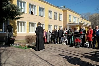 14 апреля клирик Троицкого храма г. Пушкино иерей Александр Сорокин принял участие в торжественном мероприятии, посвященном 15-летию Пушкинской общественной организации бывших несовершеннолетних узников фашистских концлагерей, которая состоялась у Памятника при Центре детского творчества (ЦДТ) г. Пушкино.