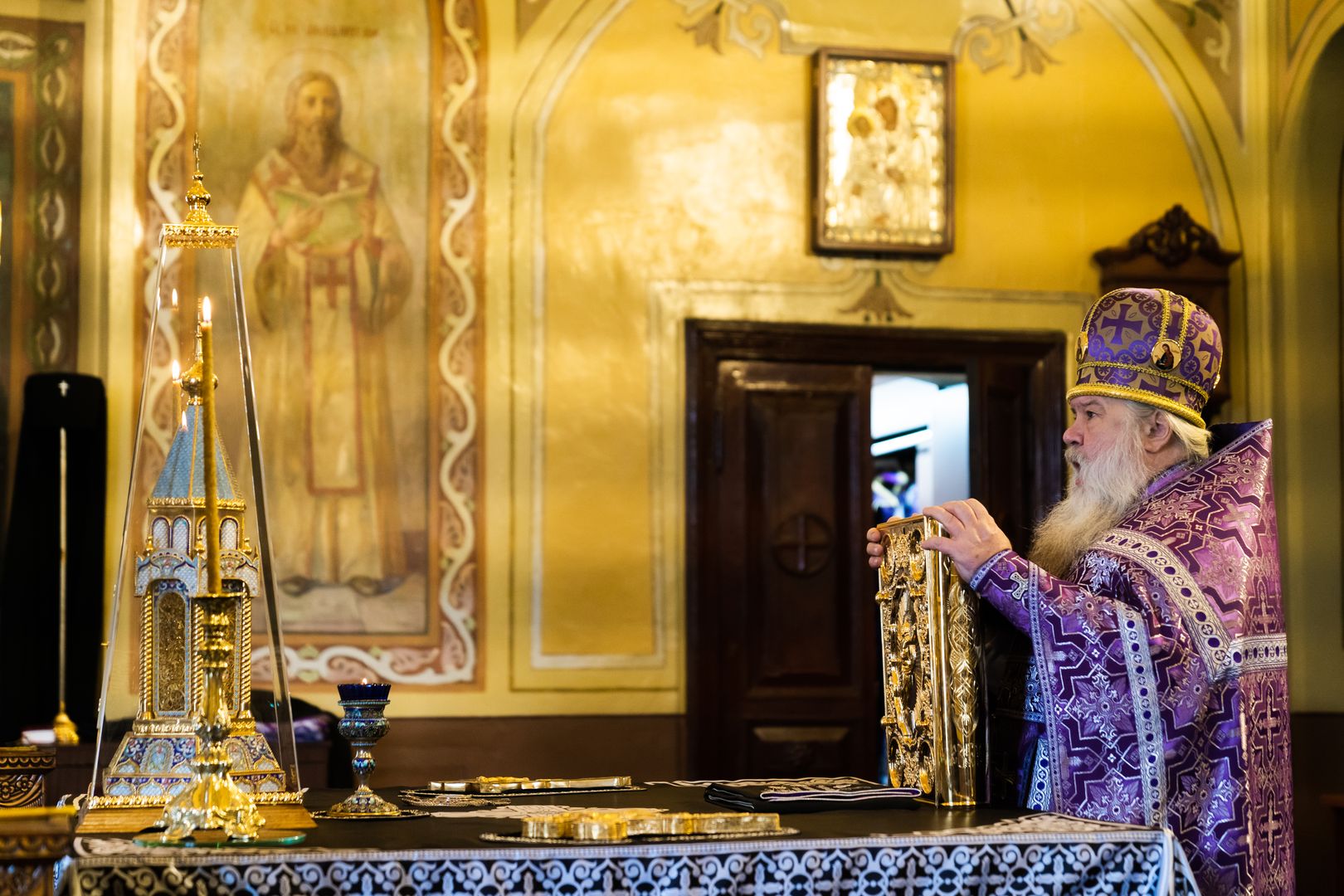 Его Высокопреосвященству сослужили клирики Троицкого собора. После сугубой ектении была вознесена молитва о восстановлении мира.