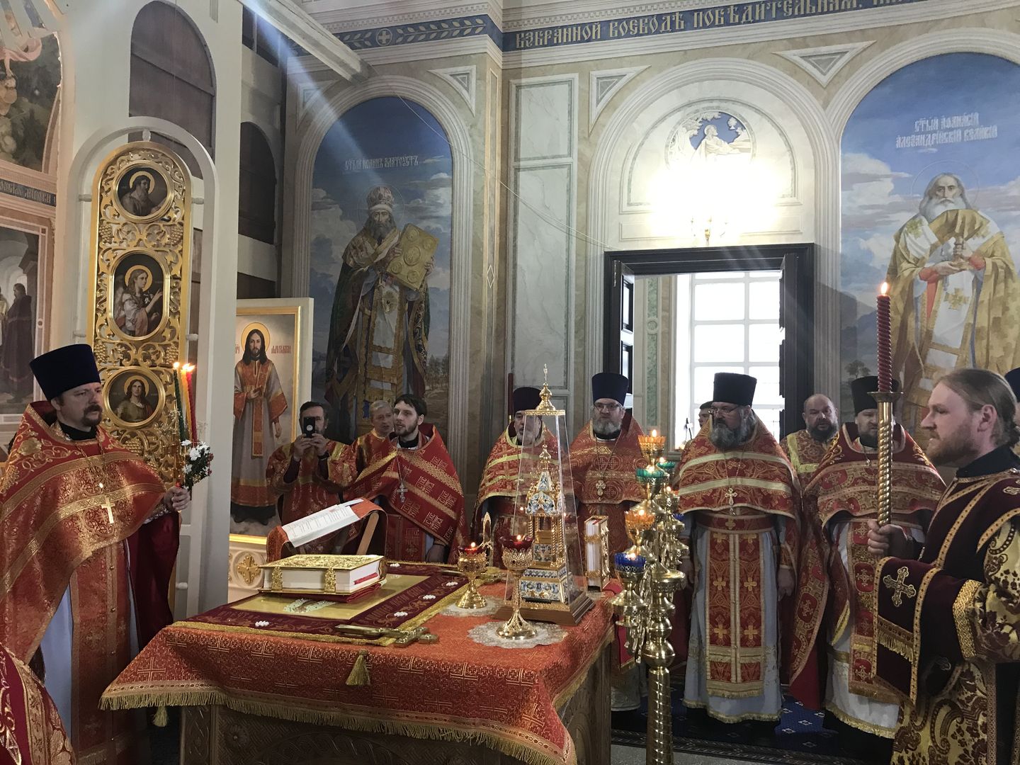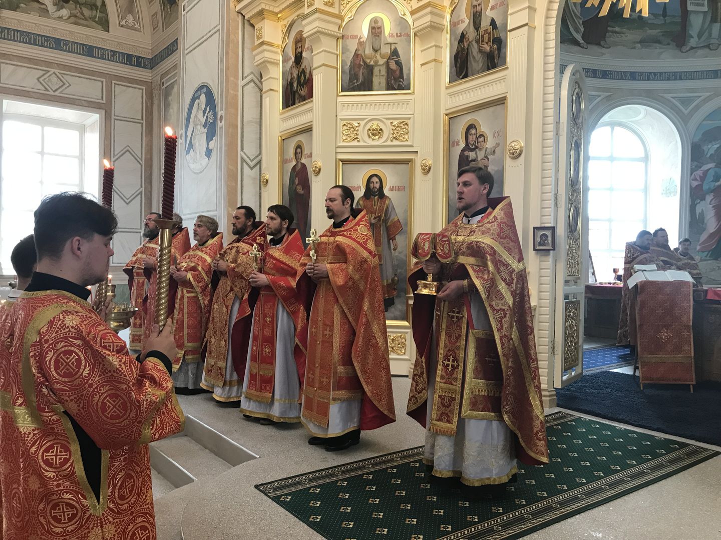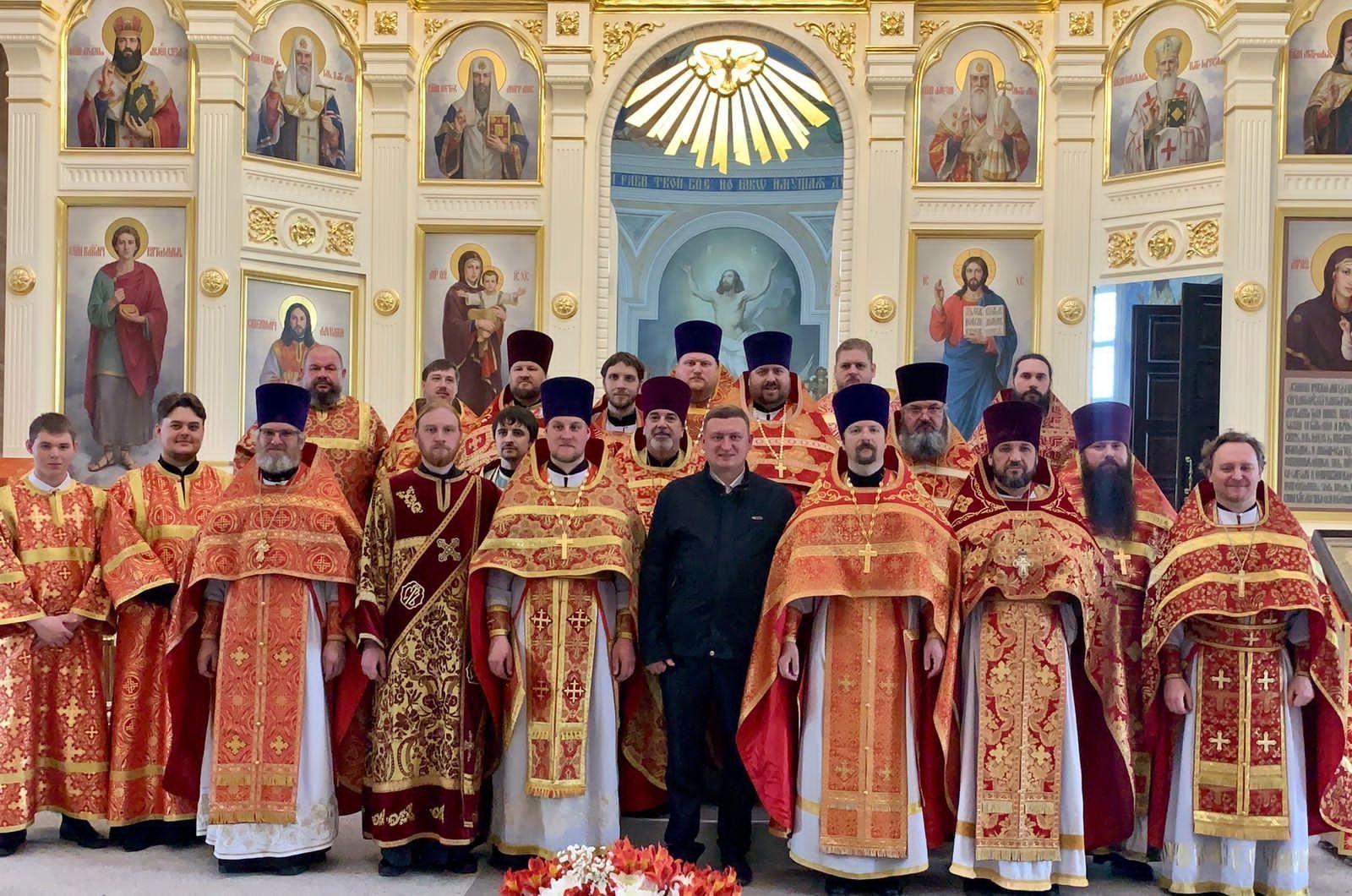 27 апреля, в Светлую Среду, в Казанском храме с. Дединово состоялось пасхальное соборное богослужение духовенства 1-го и 2-го Луховицких благочиний. Возглавил богослужение благочинный церквей 2-го Луховицкого округа иерей Владимир Келин. Ему сослужили: благочинный 1-го Луховицкого округа протоиерей Владимир Сазонов и клирики двух благочиний. За богослужением молились глава городского округа Луховицы С.А. Тимохин, первый заместитель главы городского округа Луховицы Е.А. Лядова, помощник депутата Московской Областной Думы В.Н. Барсукова В.А. Фролов, сотрудники администрации, прихожане и гости. По запричастном стихе священник Александр Карташев настоятель Казанского храма г. Луховицы зачитал Пасхальное послание Патриарха Московского и всея Руси Кирилла. После отпуста Литургии иерей Владимир Келин поздравил всех присутствующих с Пасхой Христовой и пожелал сохранять пасхальную радость на протяжении всего года.