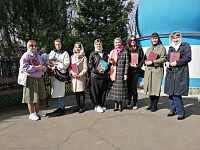 В этот же день сотрудники областного отдела исполнения наказаний посетили Николо-Архангельский храм г. Балашихи. Гости помолились за богослужением и причастились Святых Христовых Таин. Ответственный в Балашихинском благочинии за тюремное служение священник Сергий Головенко вручил каждому гостю экземпляр Нового Завета, православный календарь и пасхальный подарок.