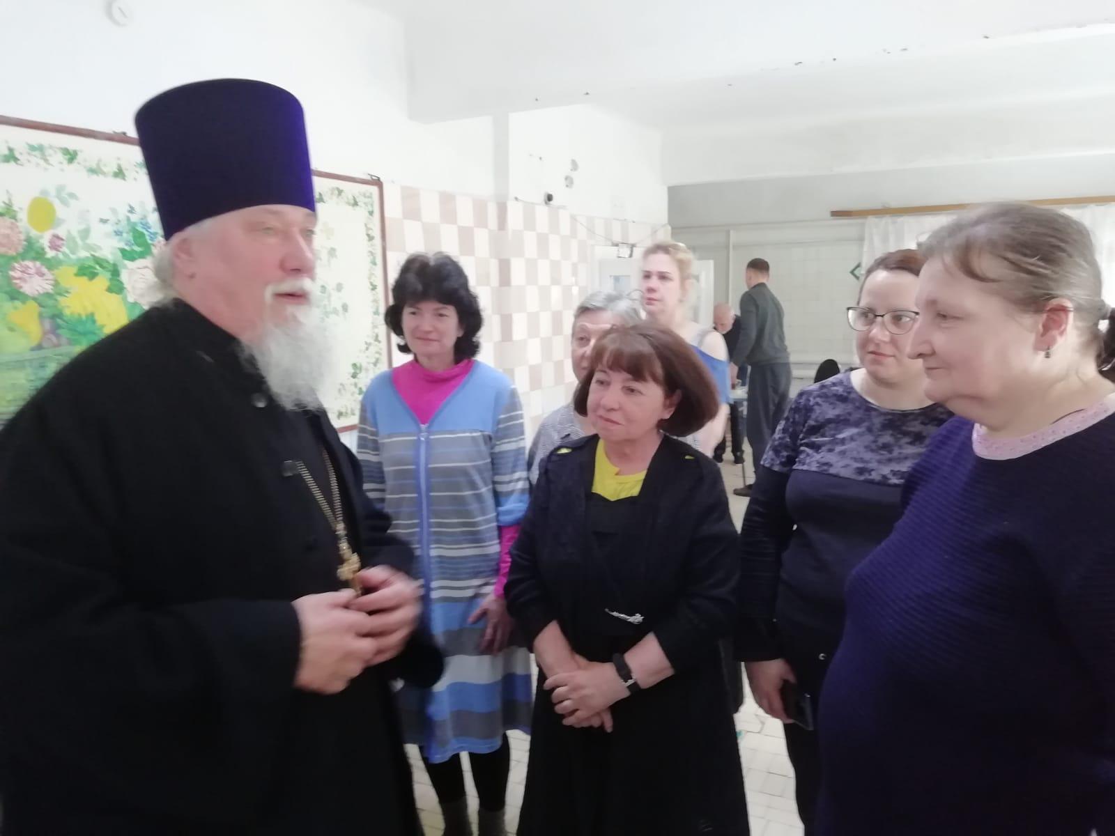 28 апреля настоятель Свято-Вознесенского храма г. Яхромы протоиерей Анатолий Пахмутов посетил пациентов 8-го отделения неврозов городской психиатрической больницы. Отец Анатолий провел беседу с присутствующими о Пасхе Христовой и ответил на их вопросы. В завершении встречи батюшка раздал Пасхальные подарки.