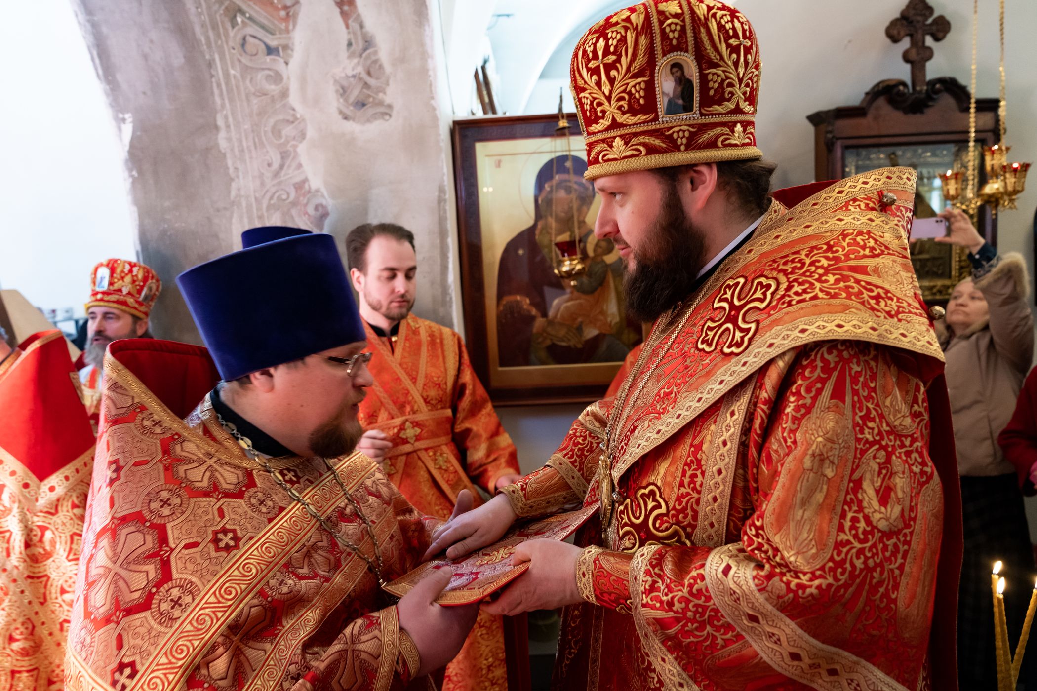 За богослужением владыка Аксий удостоил клириков Малинского благочиния иерархических наград ко дню Святой Пасхи. После сугубой ектении была вознесена молитва о восстановлении мира.