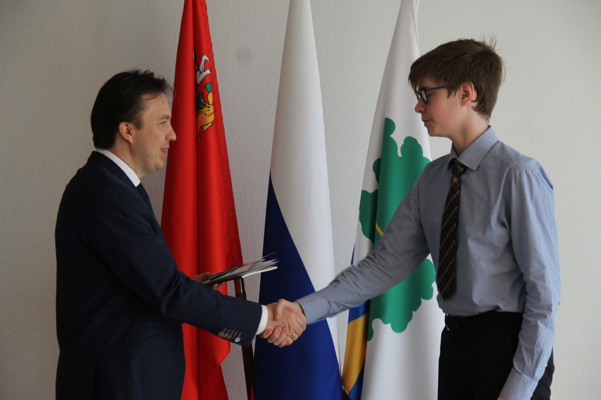 Глава города передал ребятам поздравительные адреса от губернатора Московской области Андрея Юрьевича Воробьева и подарил книгу о почетных гражданах Дубны.
