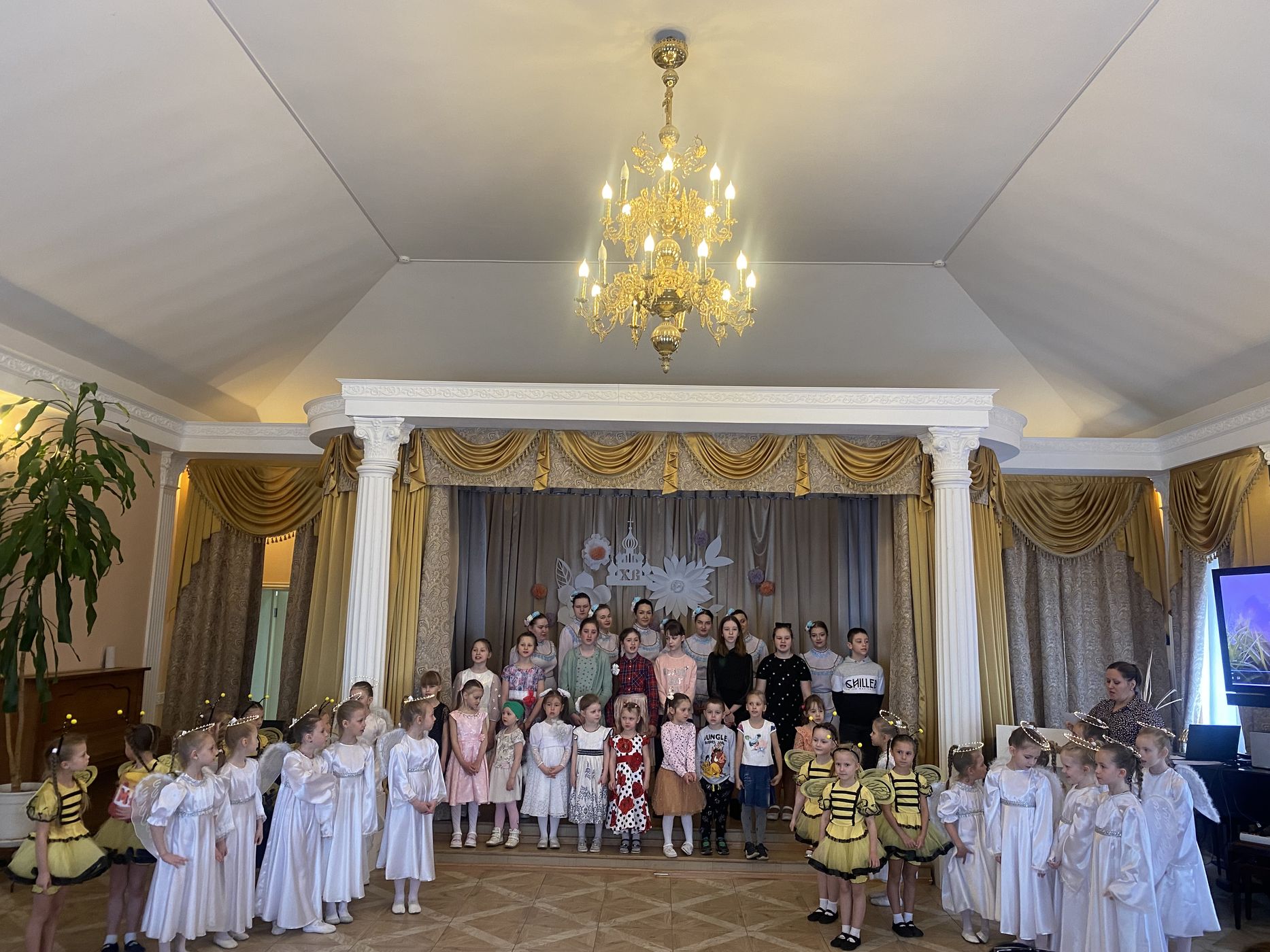 Накануне Пасхи священники Клинского благочиния посетили пункт временного размещения «Звонкие голоса», проживающие смогли получить книги о молитве и освятить куличи, яйца и пасхи. Желающие смогли участвовать в пасхальных богослужениях близлежащих храмов.