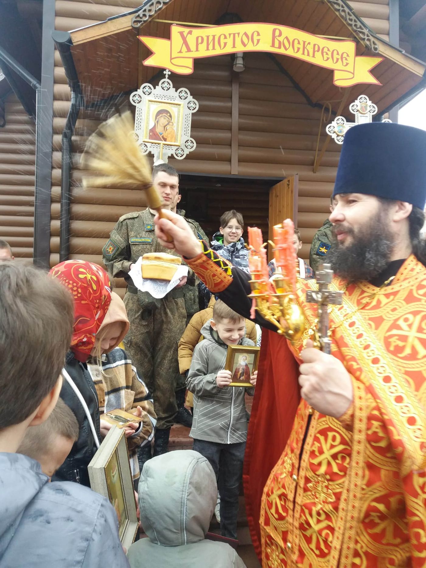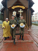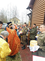 Перед праздником Святой Пасхи Христовой военнослужащие воинских частей городского округа Клин приняли участие в совершении таинства Покаяния. А в сам праздник Пасхи они молились на Божественной литургии в храме преподобномученика Серафима Клинского в военном городке Клин-9 и причащались Святых Христовых Таин. По окончании службы для них провели экскурсию, а также всем военнослужащим вручили пасхальные подарки.