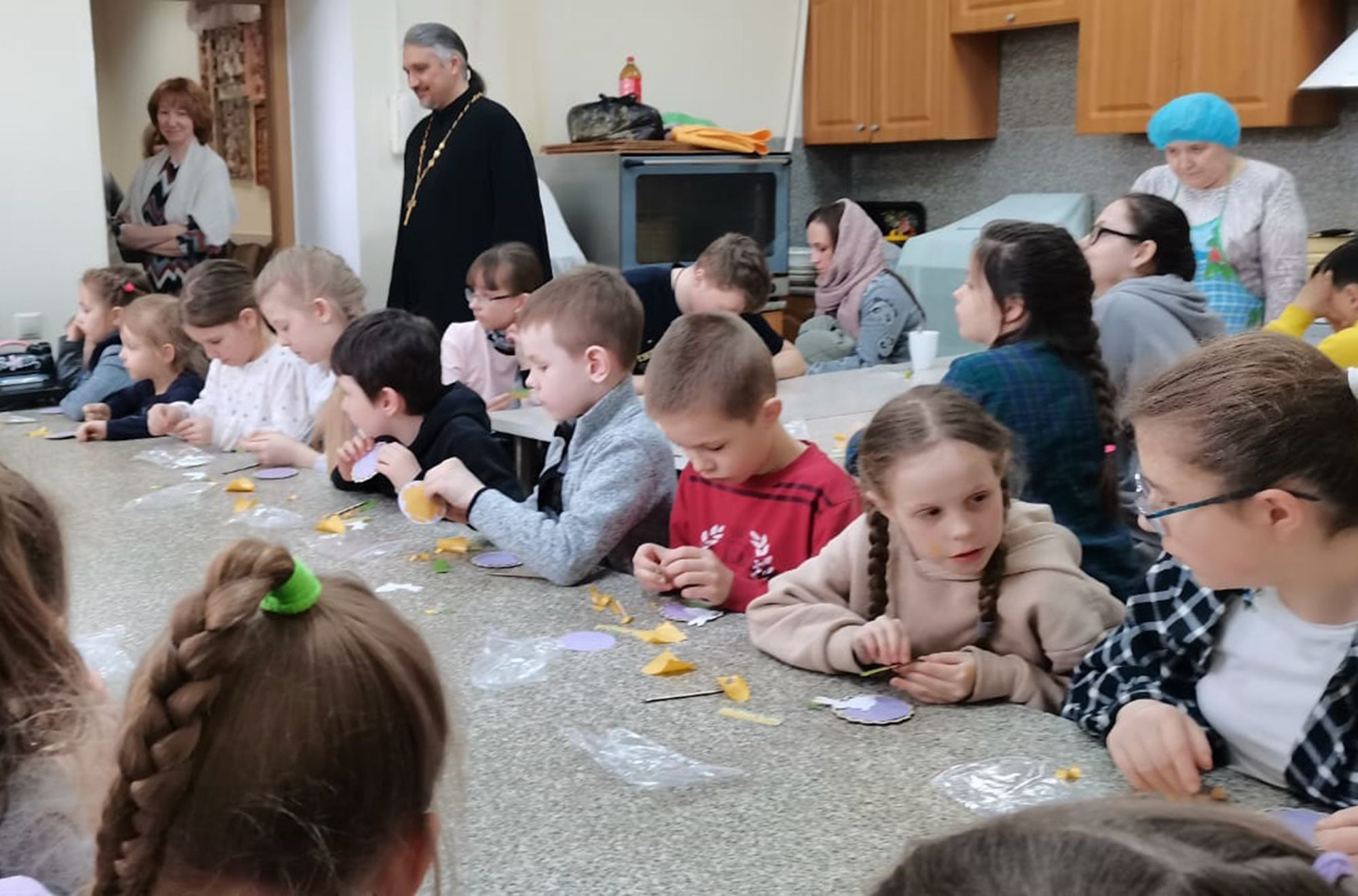 Так же, 27 апреля, настоятель Серафимовского храма протоиерей Александр Бекещенко встретился с учащимися 6-Г класса МБОУ «Гимназия №5» микрорайона Юбилейный г. Королёва. Отец Александр рассказал ребятам о празднике Пасхи и Светлой седмице, а также о традиции красить яйца и печь куличи на Пасху и ответил на их вопросы.