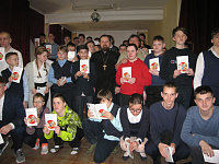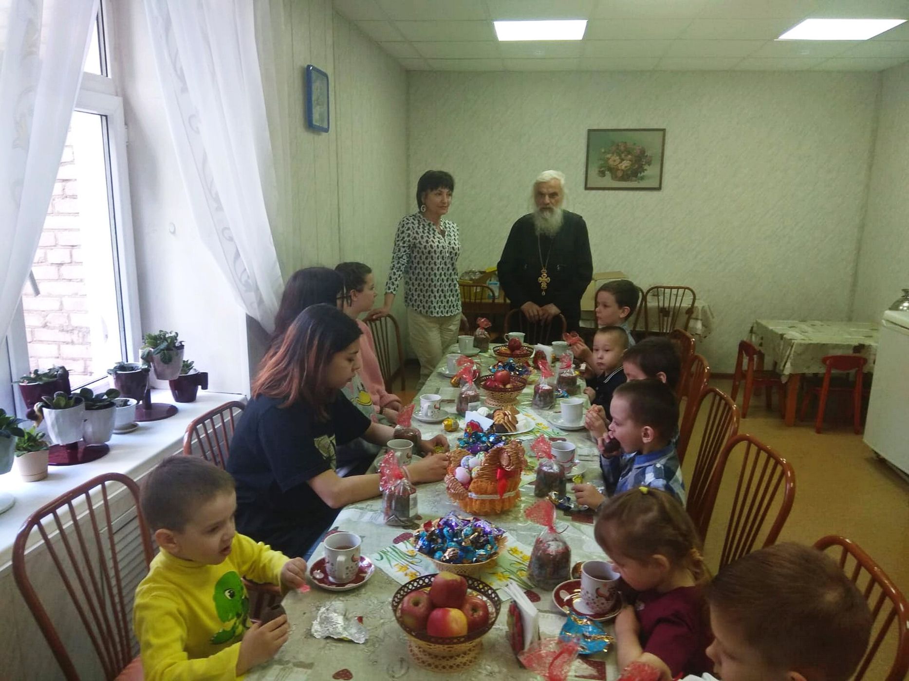 В среду Светлой седмицы, 27 апреля, клирики Троицкого храма священник Павел Трошин и диакон Александр Опалев посетили воспитанников социально-реабилитационного центра для несовершеннолетних «Забота», временно располагающегося в гимназии «Российская школа». Священник Павел поздравил ребят, их родителей и сотрудников центра с Пасхой, подарил детские книги о Воскресении Господа Иисуса Христа, куличи и шоколадные яйца.