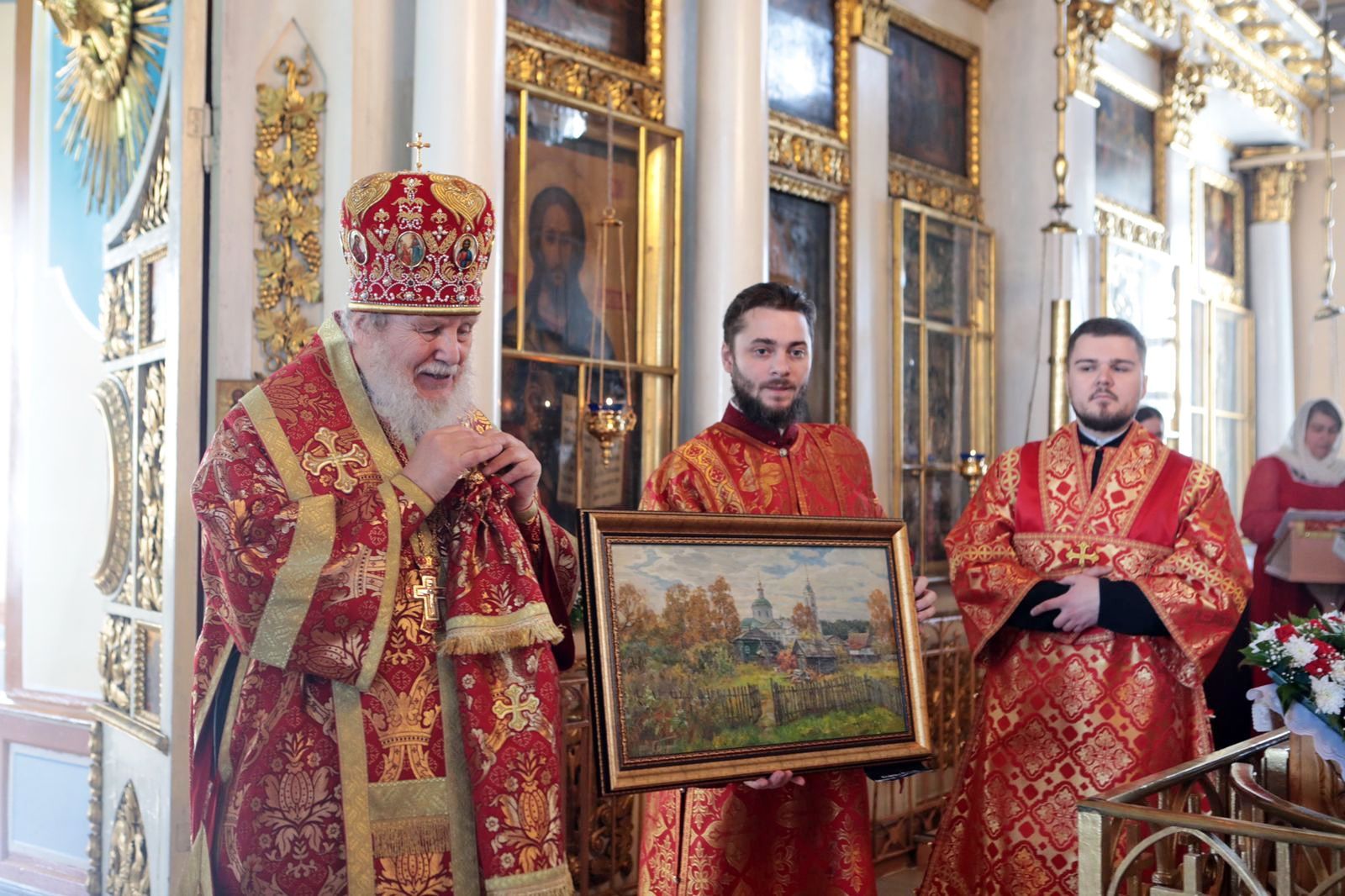 В дар Владыке была преподнесена картина с изображением Богородицерождественского храма деревни Саурово.