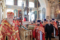 По окончании Литургии перед иконой мученика Сергия Архангельского было совершено славление.