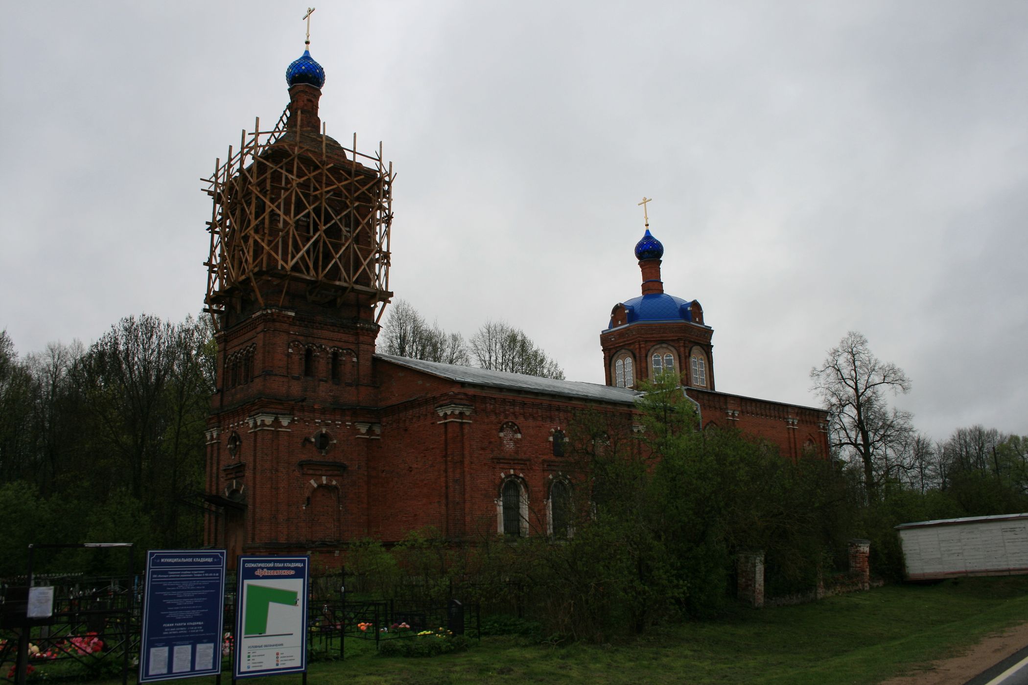 17 мая в с. Трехсвятское Дмитровского городского округа прошло выездное совещание по вопросу реставрации Казанского храма. В нем приняли участие благочинные Долгопрудненского и Рогачевского церковных округов протоиерей Андрей Хмызов и иерец Сергий Сафронов, а также настоятель храма иерей Владимир Серов.
