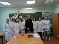 17 мая ответственный по вопросам семьи, защиты материнства и детства Коломенской епархии священник Димитрий Шаповалов провел встречу в Коломенском медицинском колледже со студентами первого курса, обучающимися по специальности "фельдшер".