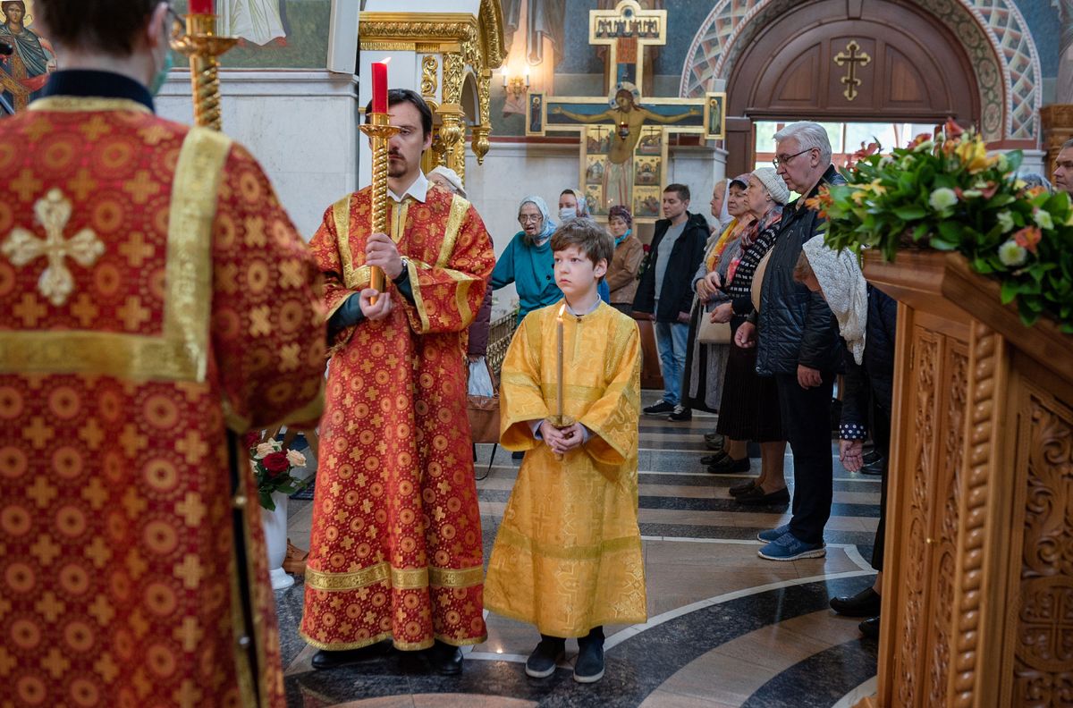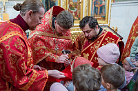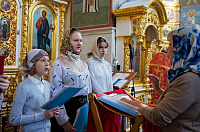 Детский хор воскресной школы под управлением С. В. Ковтуненко совместно с большим, взрослых хором под управлением регента А.В. Дедуха исполнили богослужебные песнопения. Воспитанники Школы юного алтарника (наставник - диакон Георгий Чикал) помогали священникам.