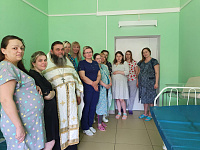 31 мая настоятель Успенского храма с. Мягкое священник Виталий Храмов отслужил молебен в Родильном и Гинекологическом отделениях Серебряно-Прудской ЦРБ. Отец Виталий сказал напутственные слова будущим мамам и окропил их и палаты отделений святой водой.