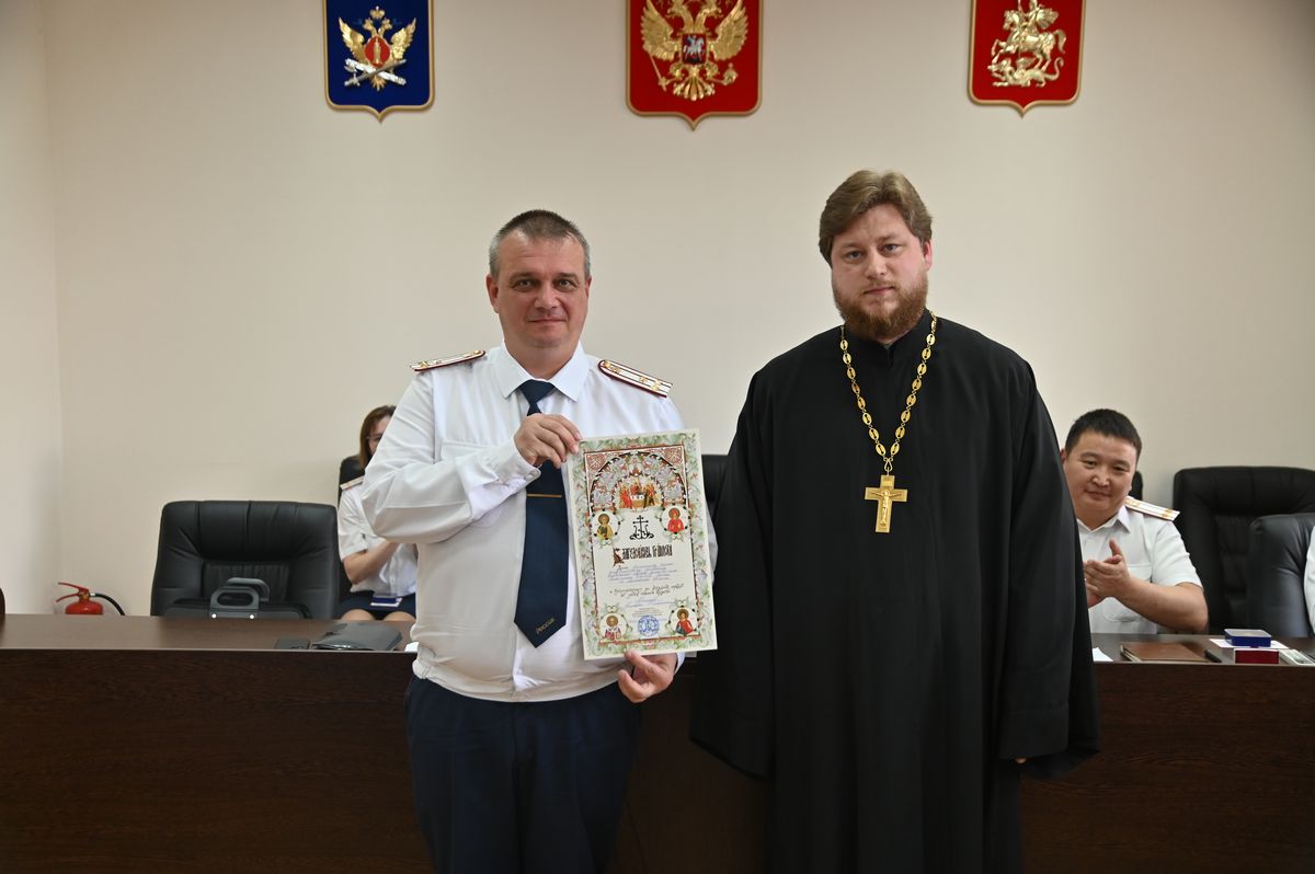 В завершении мероприятия с профессиональным праздником сотрудников ведомства поздравил председатель Межъепархиального отдела по тюремному служению Московской митрополии иерей Михаил Куземка, а также вручил заместителю начальника Управления Сергею Коломыцеву и сотрудникам воспитательной службы УФСИН России по Московской области Благословенные грамоты Синодального отдела по тюремному служению.