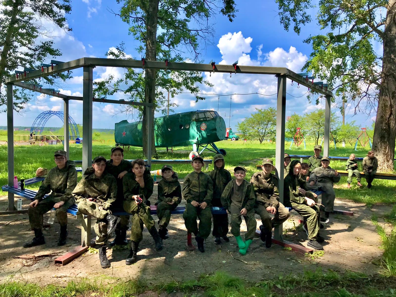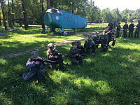 12 июня на аэродроме прошёл военно-патриотический праздник, посвящённый Дню России и 75-летию аэроклуба. Воспитанники кадетского отряда под руководством Ю.А. Пермякова и их родители приняли участие в военно-исторической реконструкции боя времён Великой Отечественной войны, организованной членами Военно-спортивного клуба Музея Победы и Ордена Маргелова спортивного клуба «Десантник» под руководством Ю.Ю. Шапарина – воина-десантника, ветерана Афганистана, мастера парашютного спорта и опытного пилота. По сценарию реконструкции во время Великой Отечественной войны группа разведки Красной Армии осуществила нападение на колонну немецко-фашистских войск с целью отбить у противника захваченных мирных жителей и пленных советских летчиков. В поездке кадетский отряд сопровождал иерей Алексей Аборкин, принявший активное участие в духовно-просветительской и спортивной работе с ребятами.