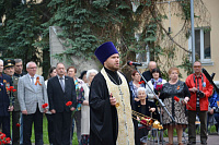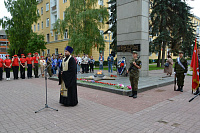Заместитель благочинного 1-го Воскресенского округа Евгений Ромашкин совершил заупокойную литию по погибшим в годы войны. Затем участники митинга почтили память защитников Родины минутой молчания и возложили цветы к Вечному огню.