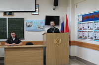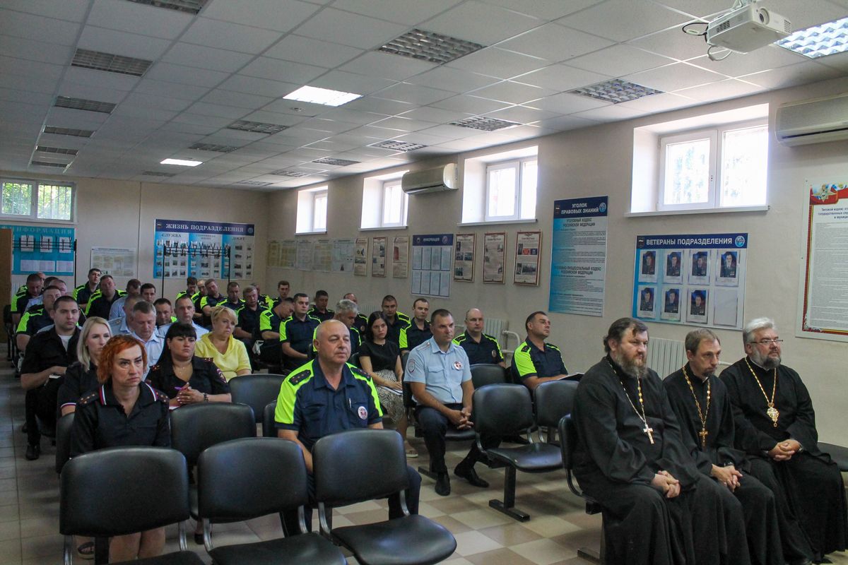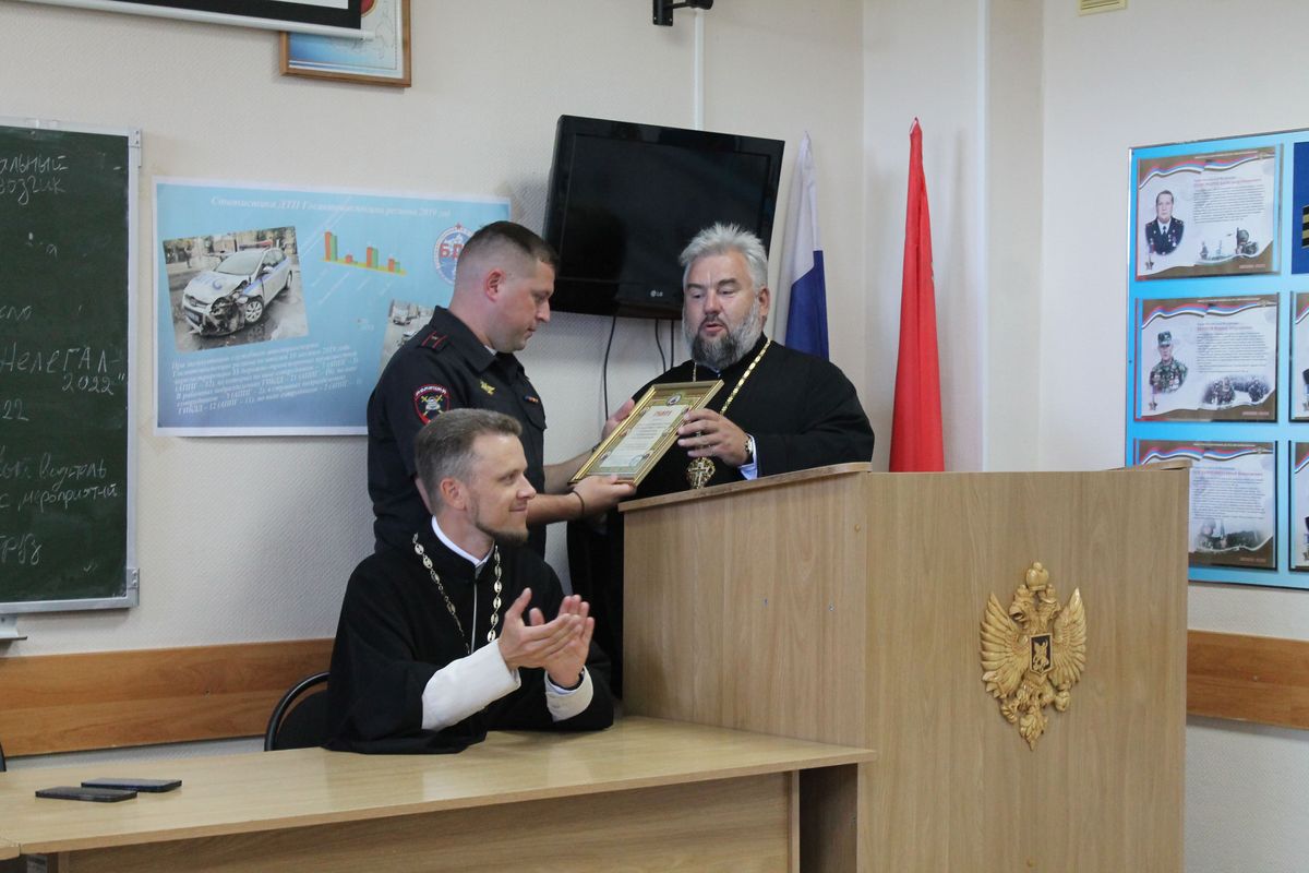 Протоиерей Сергий Рыбаков вручил грамоту Епархиального отдела личному составу ГИБДД.