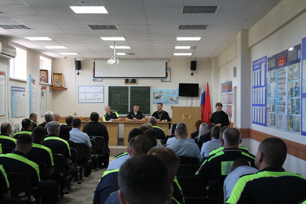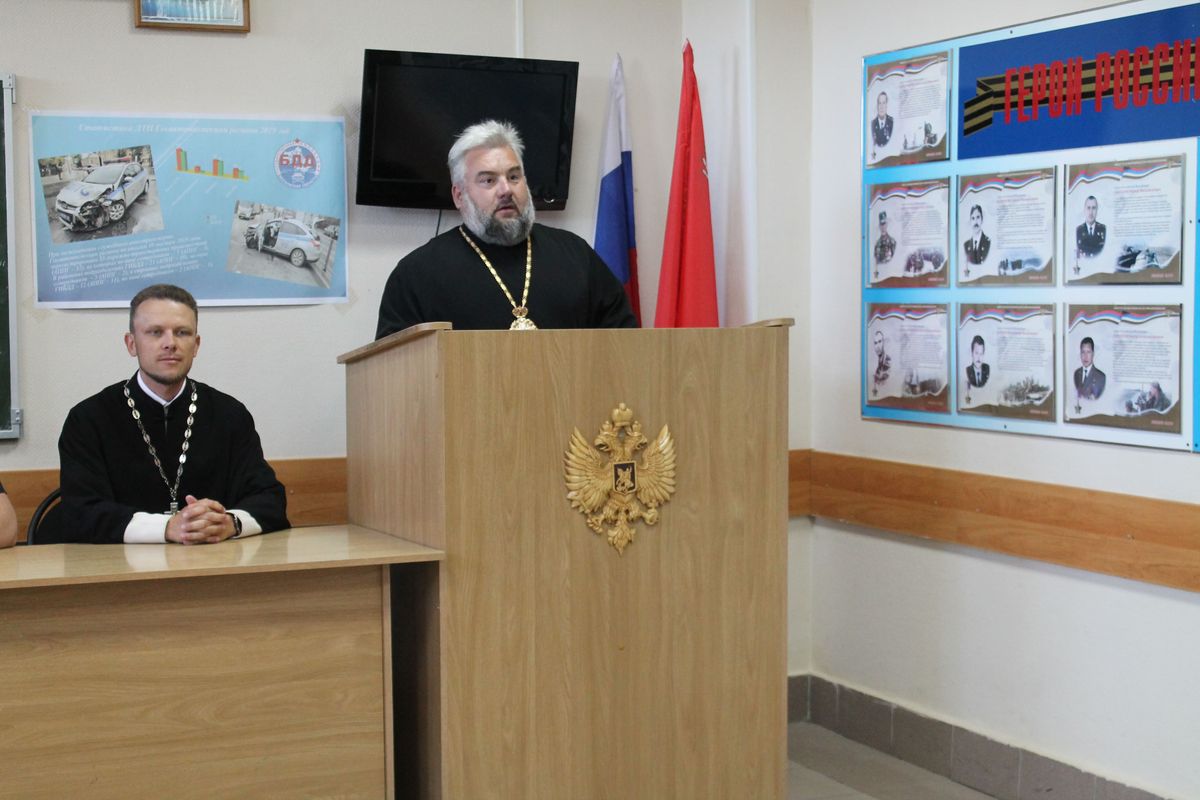 1 июля в преддверии празднования Дня ГИБДД МВД России, в актовом зале 6 батальона 2 полка ДПС (южный) ГИБДД ГУ МВД России по Московской области города Бронницы, председатель Епархиального отдела по взаимодействию с Вооруженными силами правоохранительными органами и казачеством Коломенской епархии протоиерей Сергий Рыбаков совместно с благочинным 1-го Бронницкого благочиннического округа иереем Сергием Себелевым, в присутствии благочинного 2-го Бронницкого благочиннического округа иерея Алексия Розова и ответственного за взаимодействие с Вооружёнными силами правоохранительными органами и казачеством в 1-м и 2-м Бронницких благочиннических округах протоиерея Алексия Авдокушина, поздравили сотрудников ГИБДД с их профессиональным праздником.