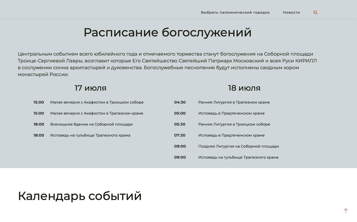 Также на сайте размещена карта, на которой отмечены точки расположения палаточных городков, мест бесплатного питания паломников, пунктов медицинской помощи, информационных пунктов и монастырских трапезных.