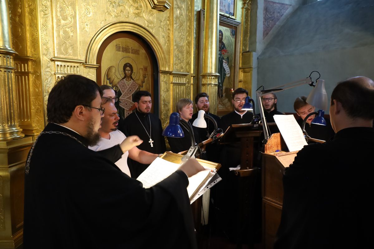 Богослужебные песнопения исполнил хор духовенства Коломенской епархии под управлением иерея Димитрия Степаненкова.