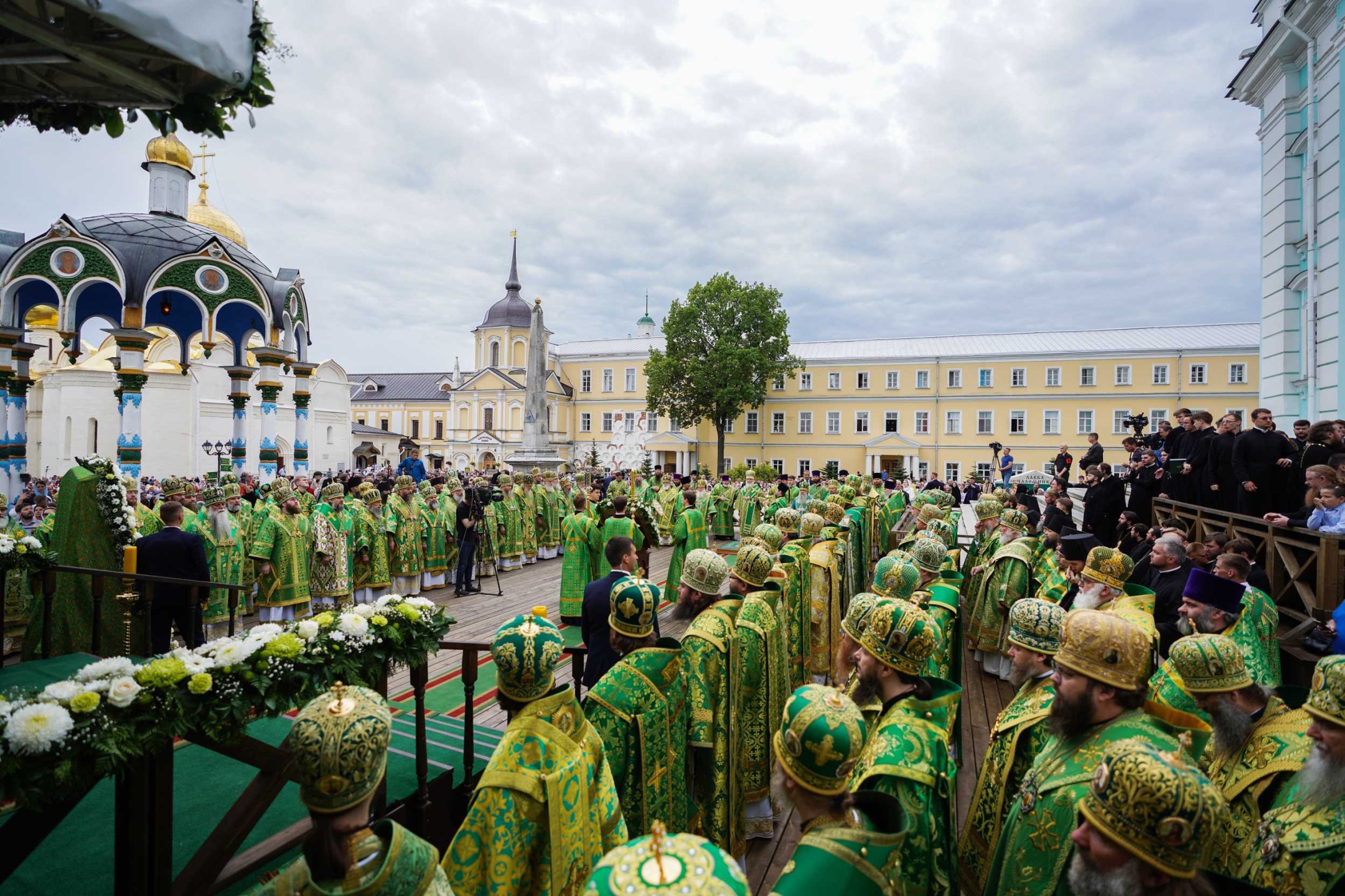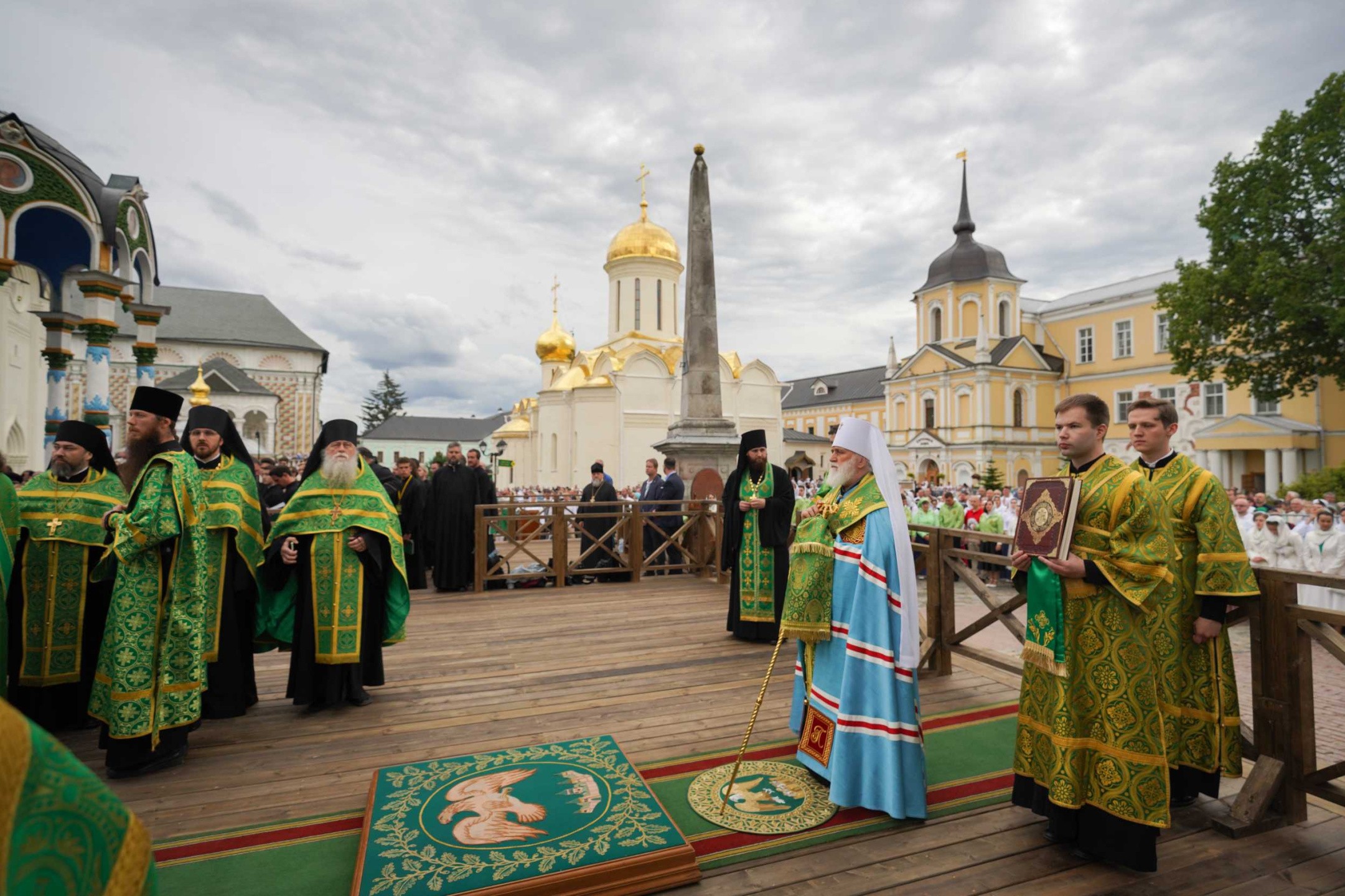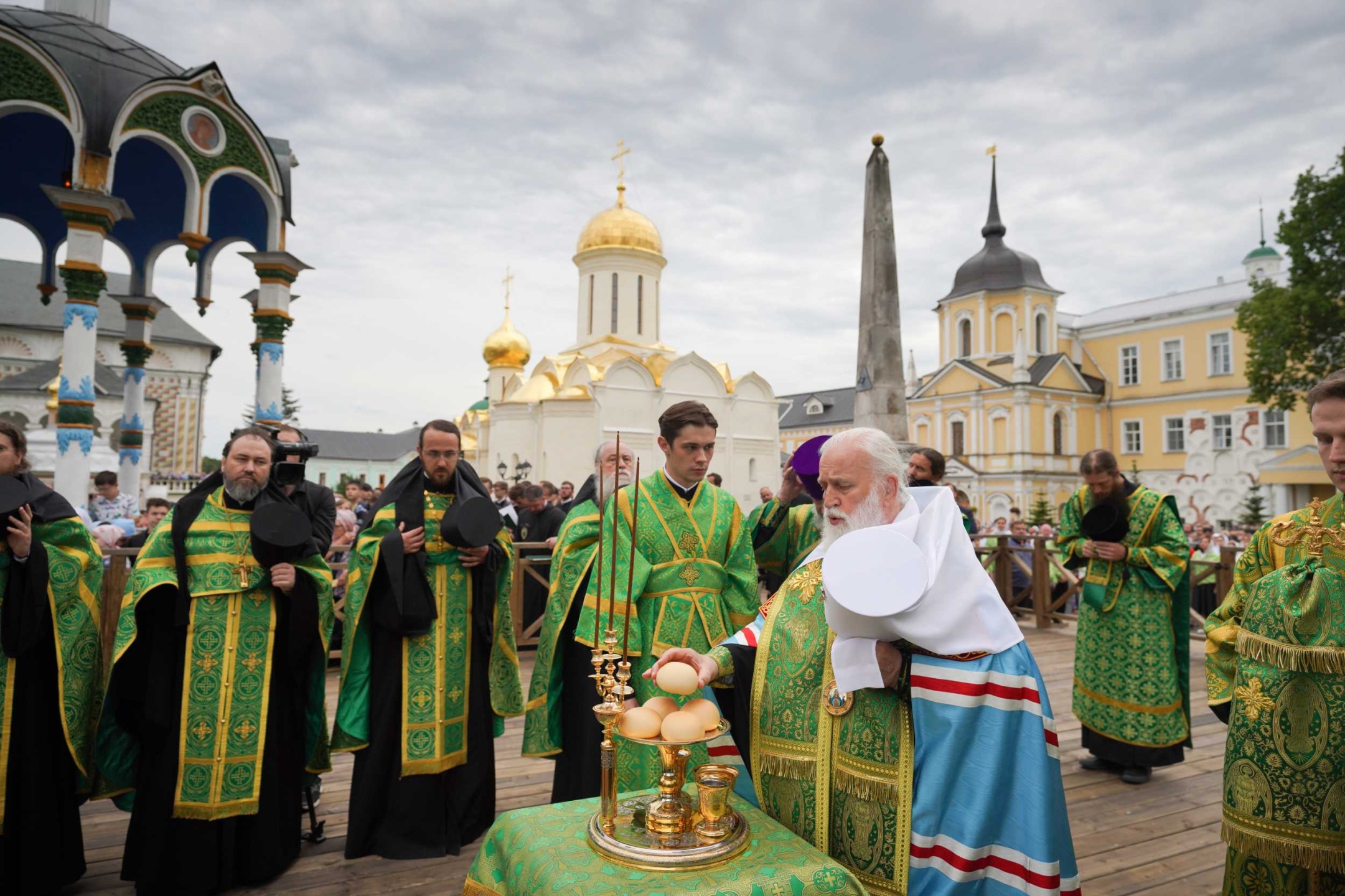В 9.00 Святейший Патриарх Московский и всея Руси Кирилл в сослужении собора архиереев и духовенства совершит Божественную литургию на Соборной площади Лавры.