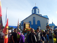 Далее богомольцы остановились в Дмитрие-Донском храме д. Нововоронино, где состоялась торжественная Литургия, которую совершил настоятель храма иерей Владимир Сухих.